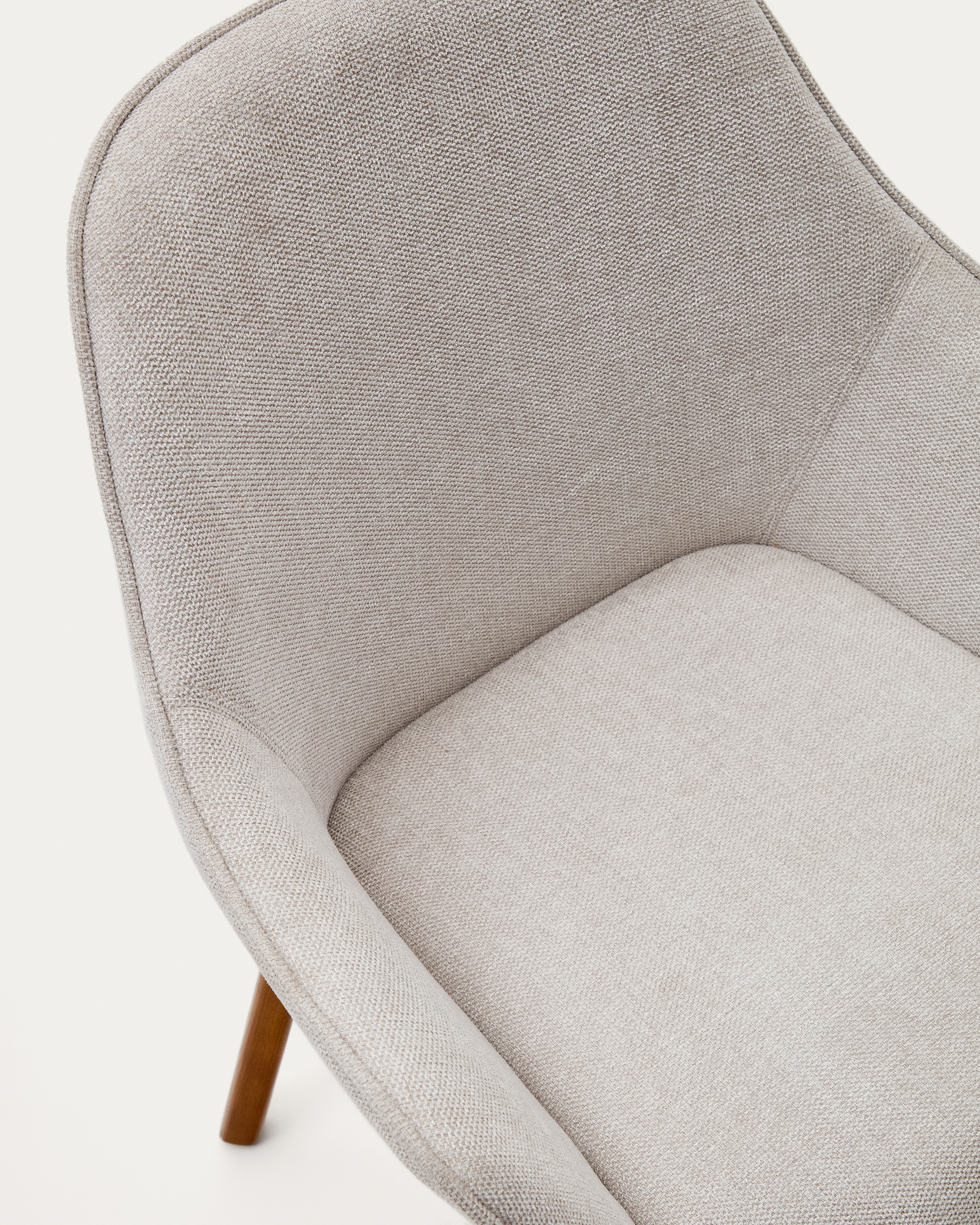 Aleli beige chenille chair with solid ash wood legs and walnut finish