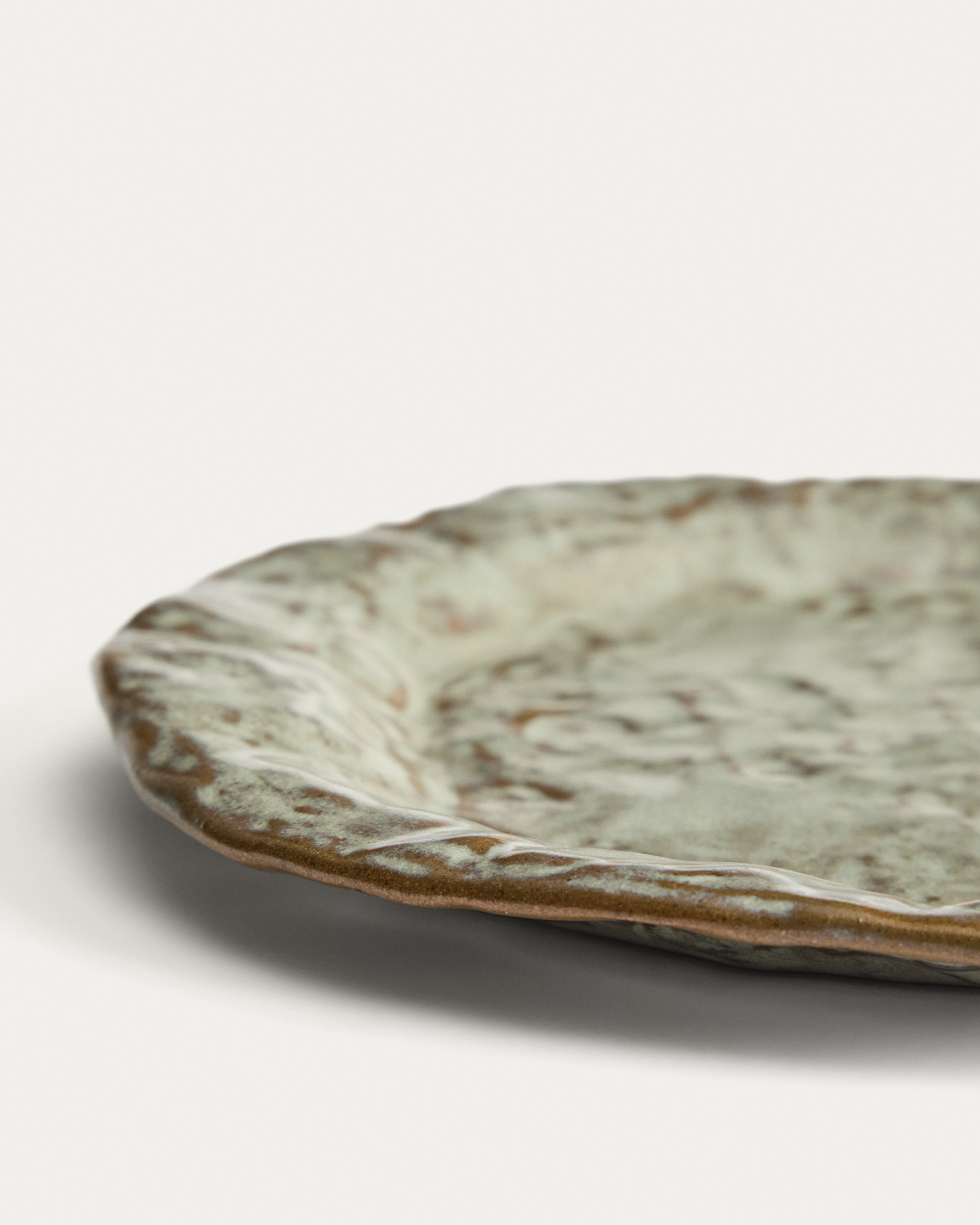 The Alenia collection stands out for its organic, irregular shapes that add a distinctive and contemporary touch to the table. Thanks to the glazing process, each item displays unique hues and textures—no two are exactly alike. The grey finish and softly wavy rim enhance its presence and add visual depth to any setting.