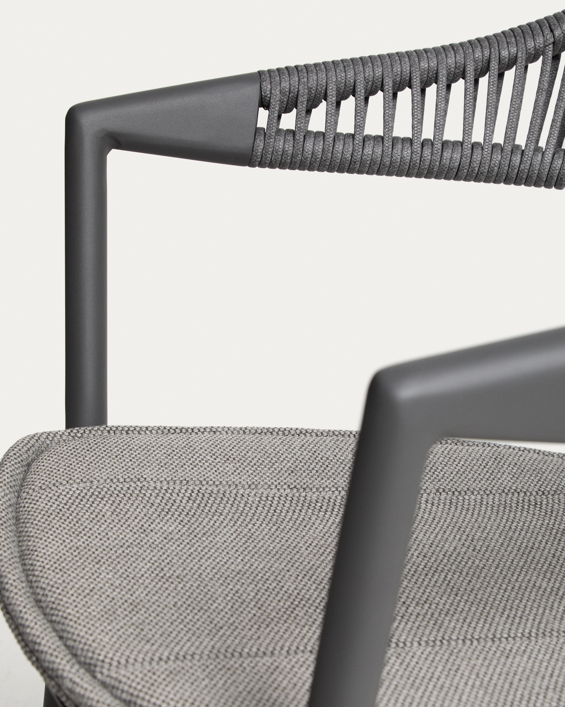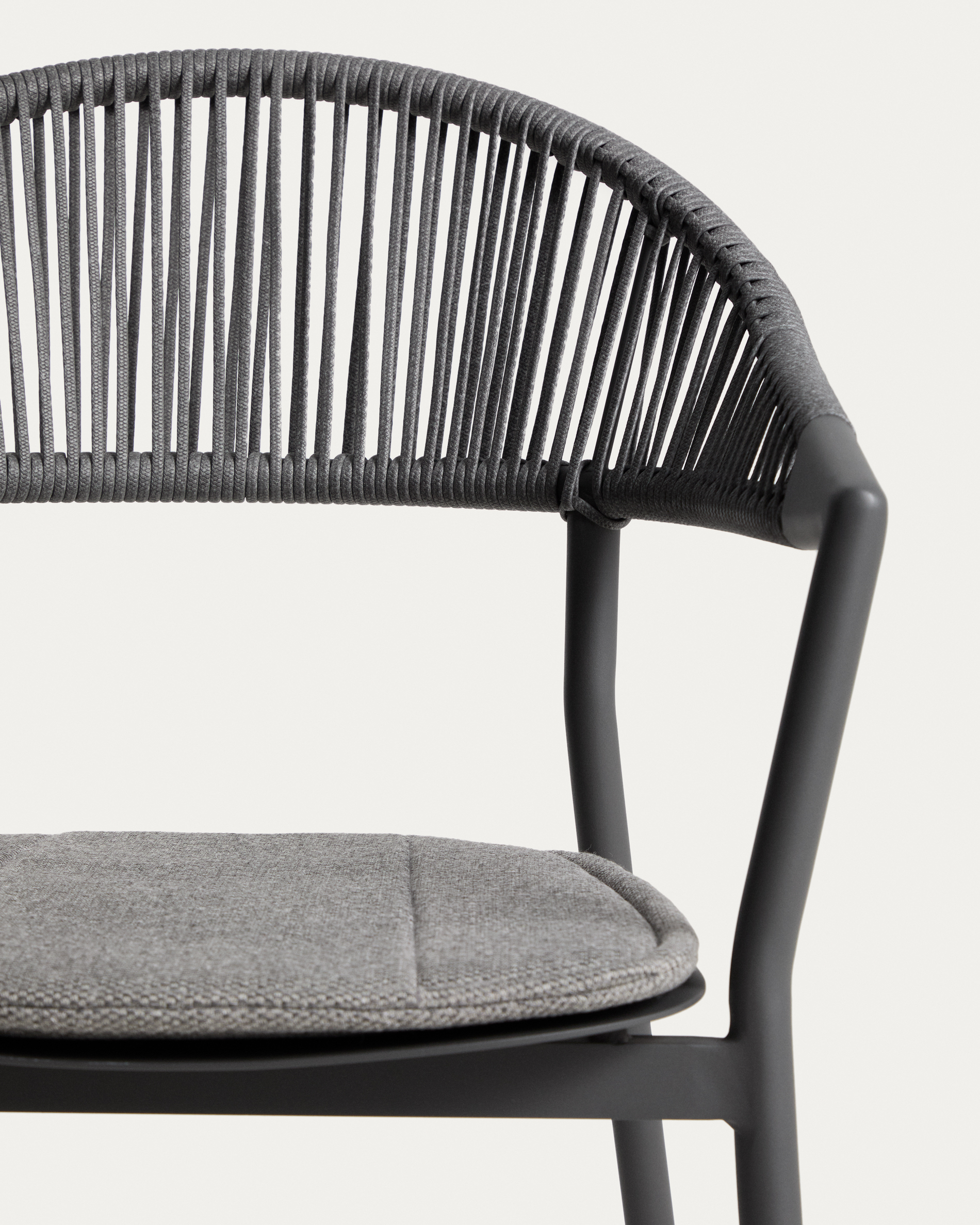 Stackable Alimia outdoor chair in graphite aluminium with grey synthetic rope