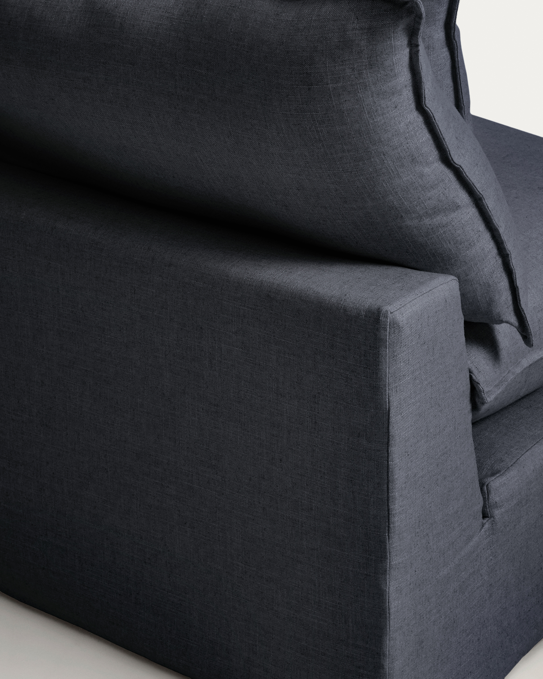 • Dark grey armchair with removable cover.