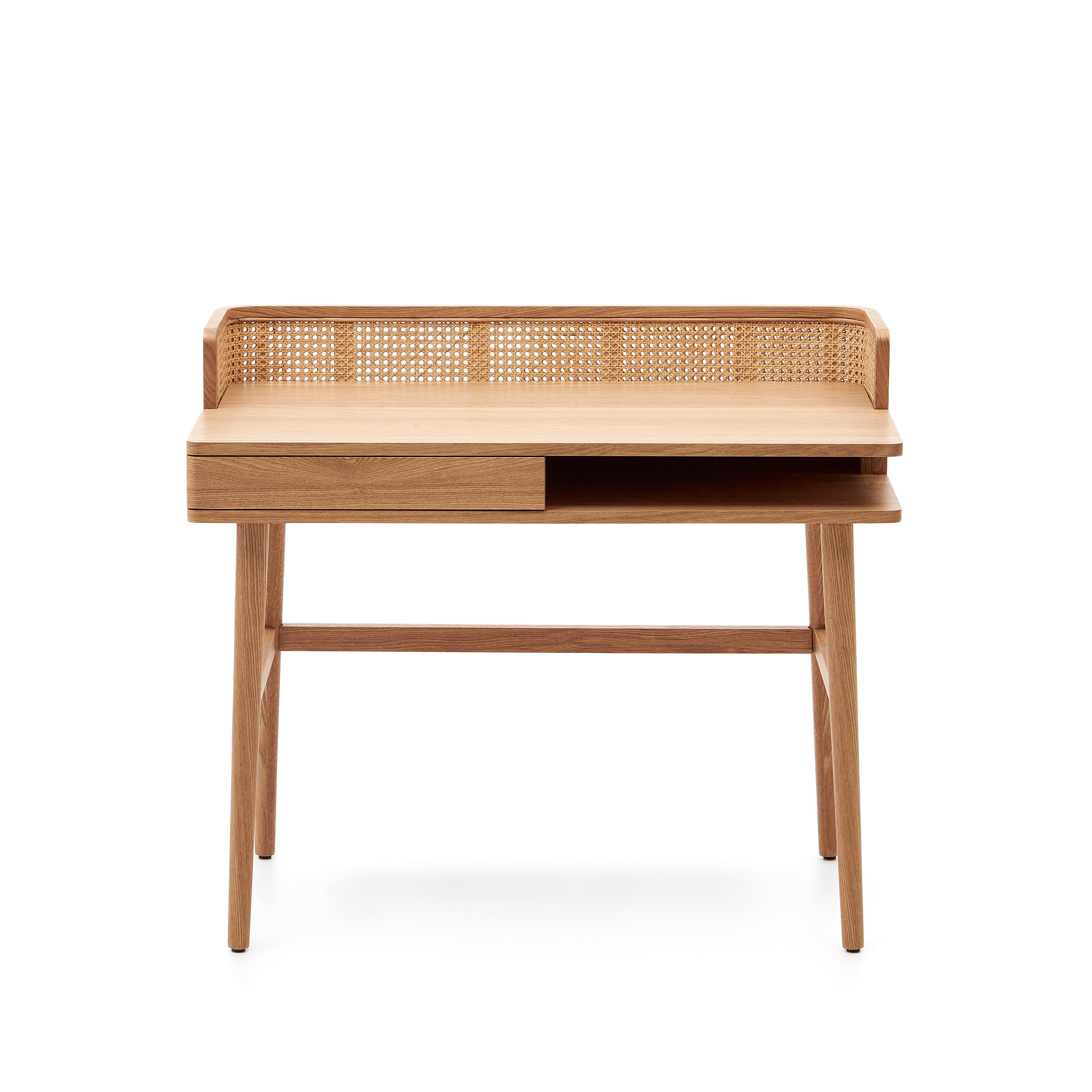 • Table made from solid and veneer ash wood, back panel in woven rattan.