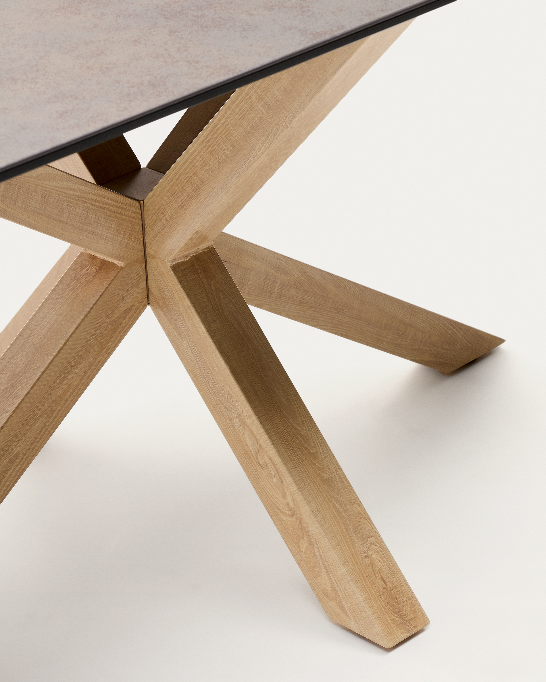 Argo table in Iron Moss porcelain and wood-effect steel legs, 180 x 100 cm