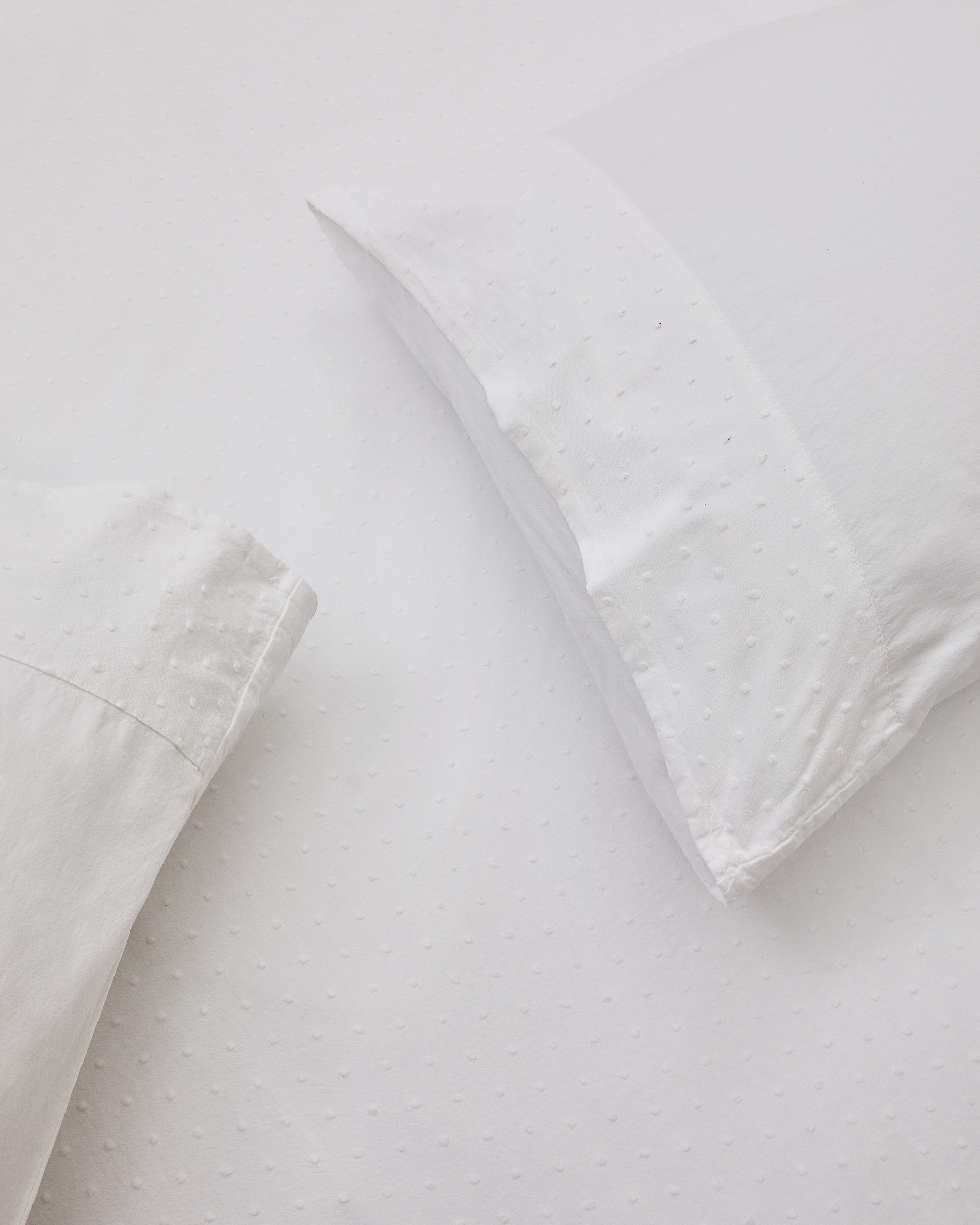 • Bed set with plumeti detail. 260 x 240 cm for a 180 x 200 cm mattress. Includes two 45 x 85 cm pillowcases.