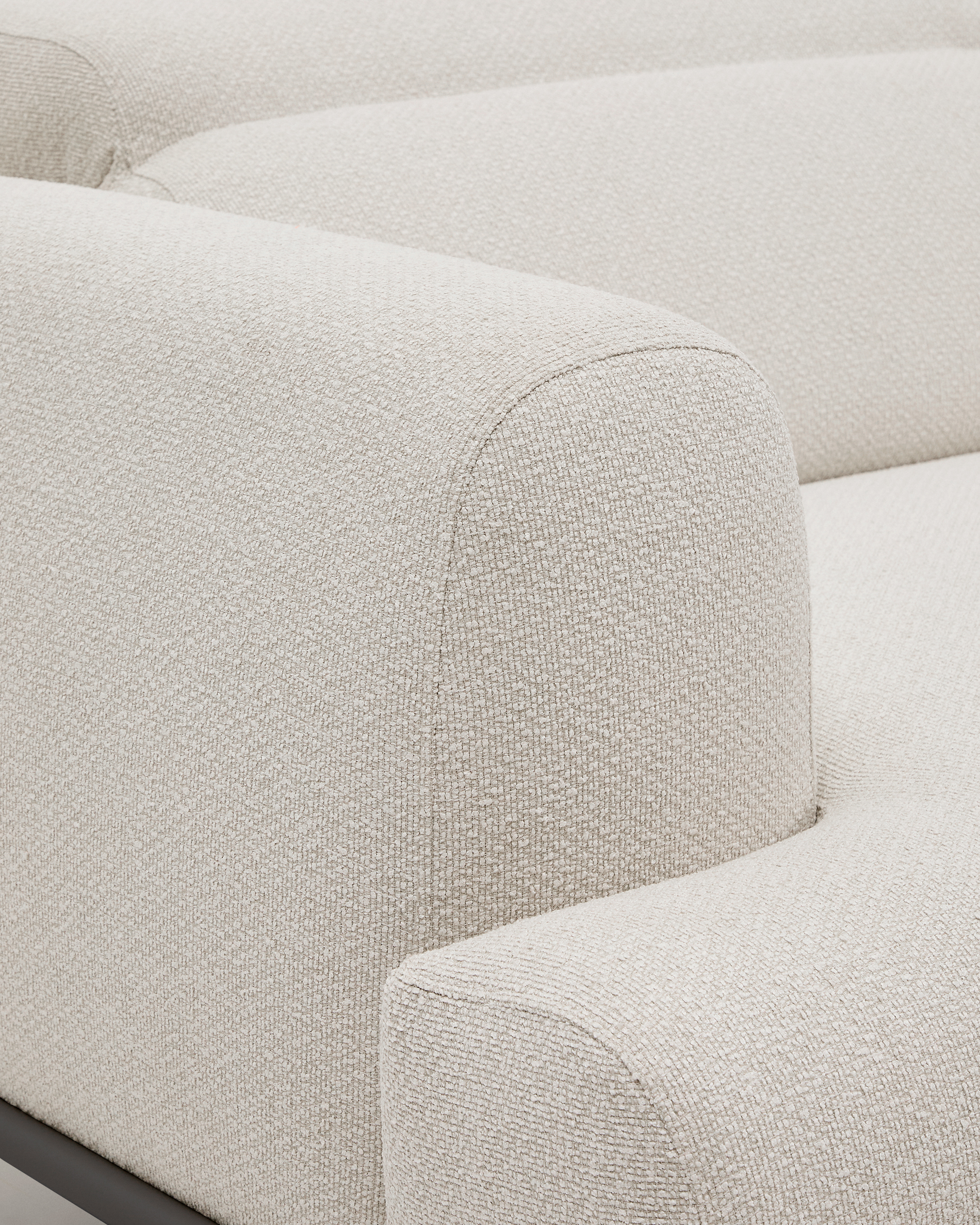 • 3-seater sofa upholstered in soft-touch ecru chenille with a small structure. Metal base with matte micro-textured finish.