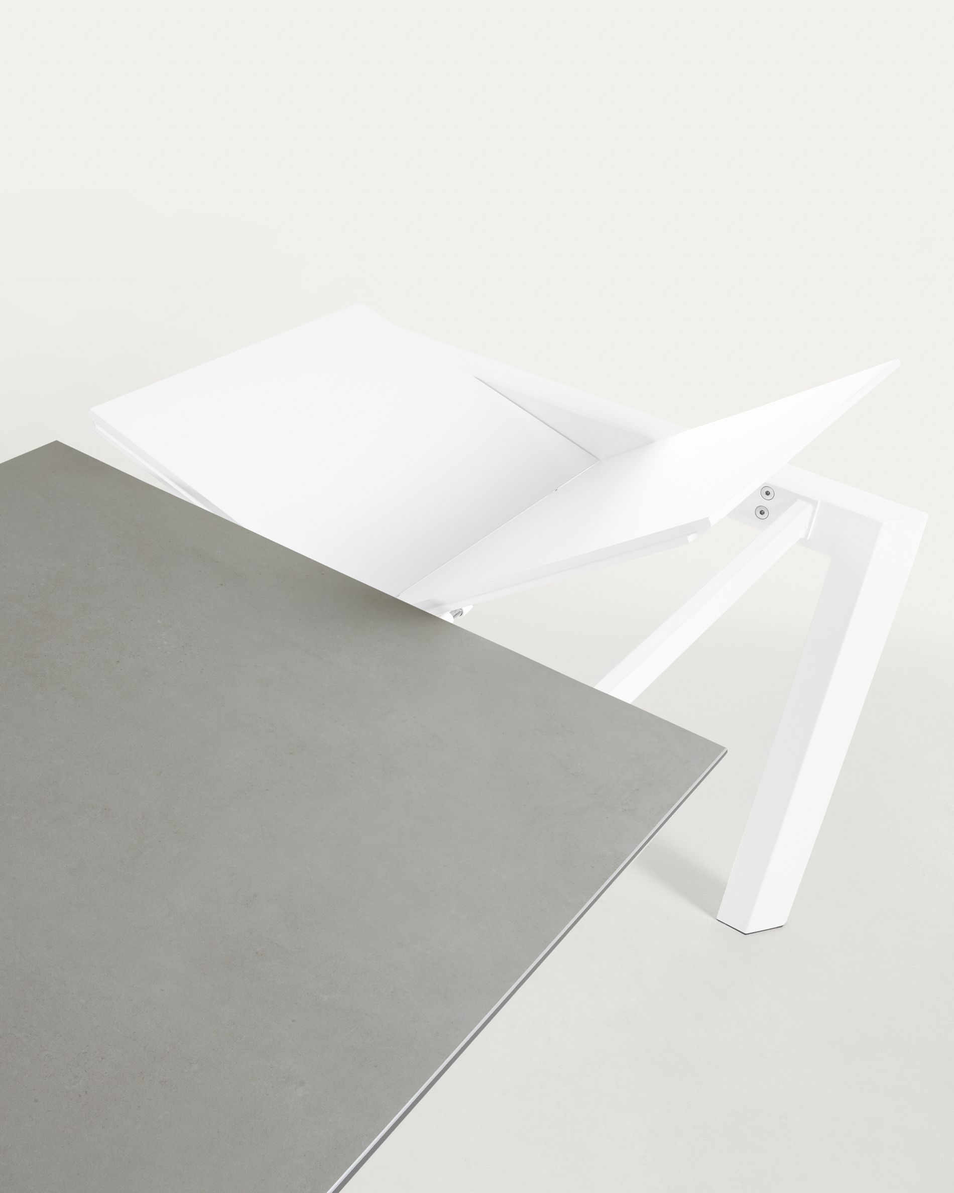 Axis porcelain extendable table in Hydra Lead finish with white legs 160 (220) cm