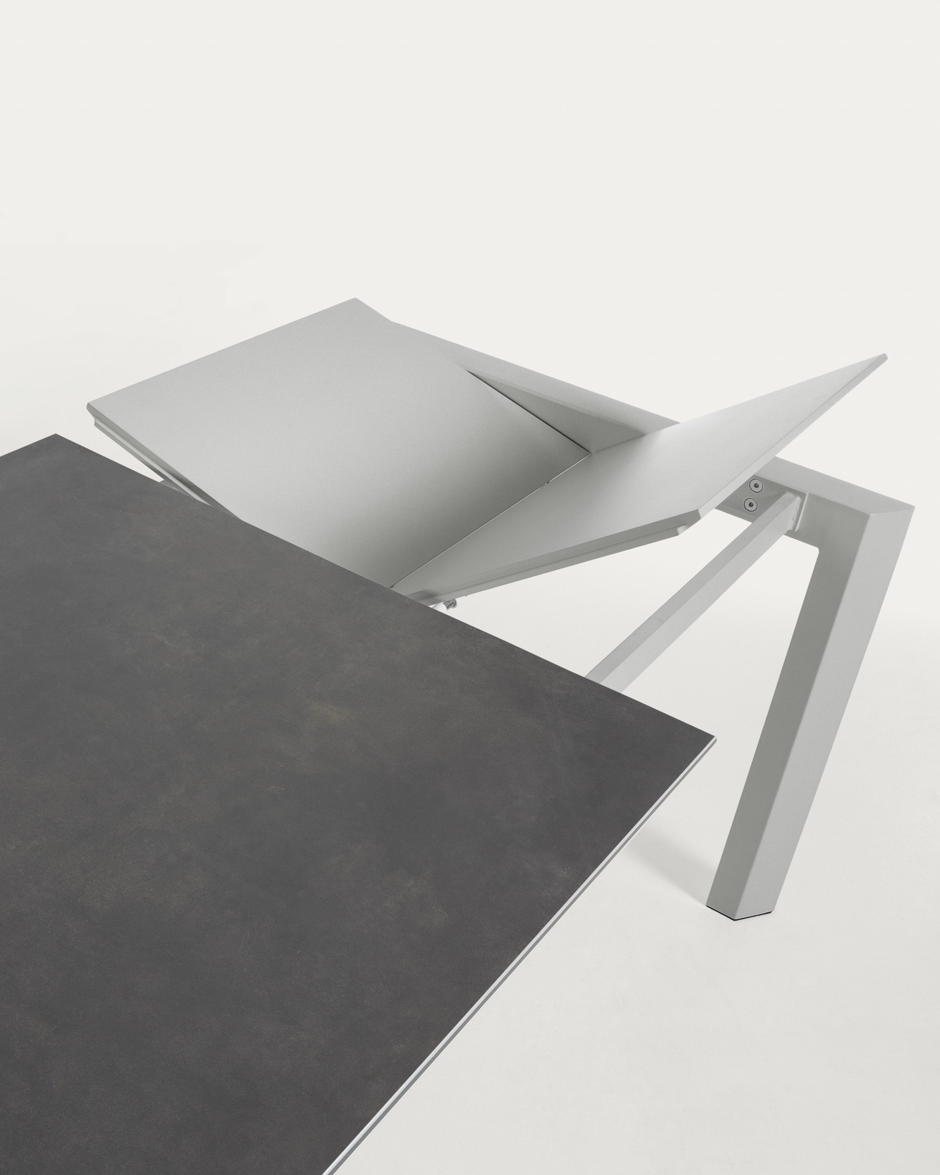 Axis porcelain extendable table in Volcano Rock finish with grey steel legs 120 (180) cm