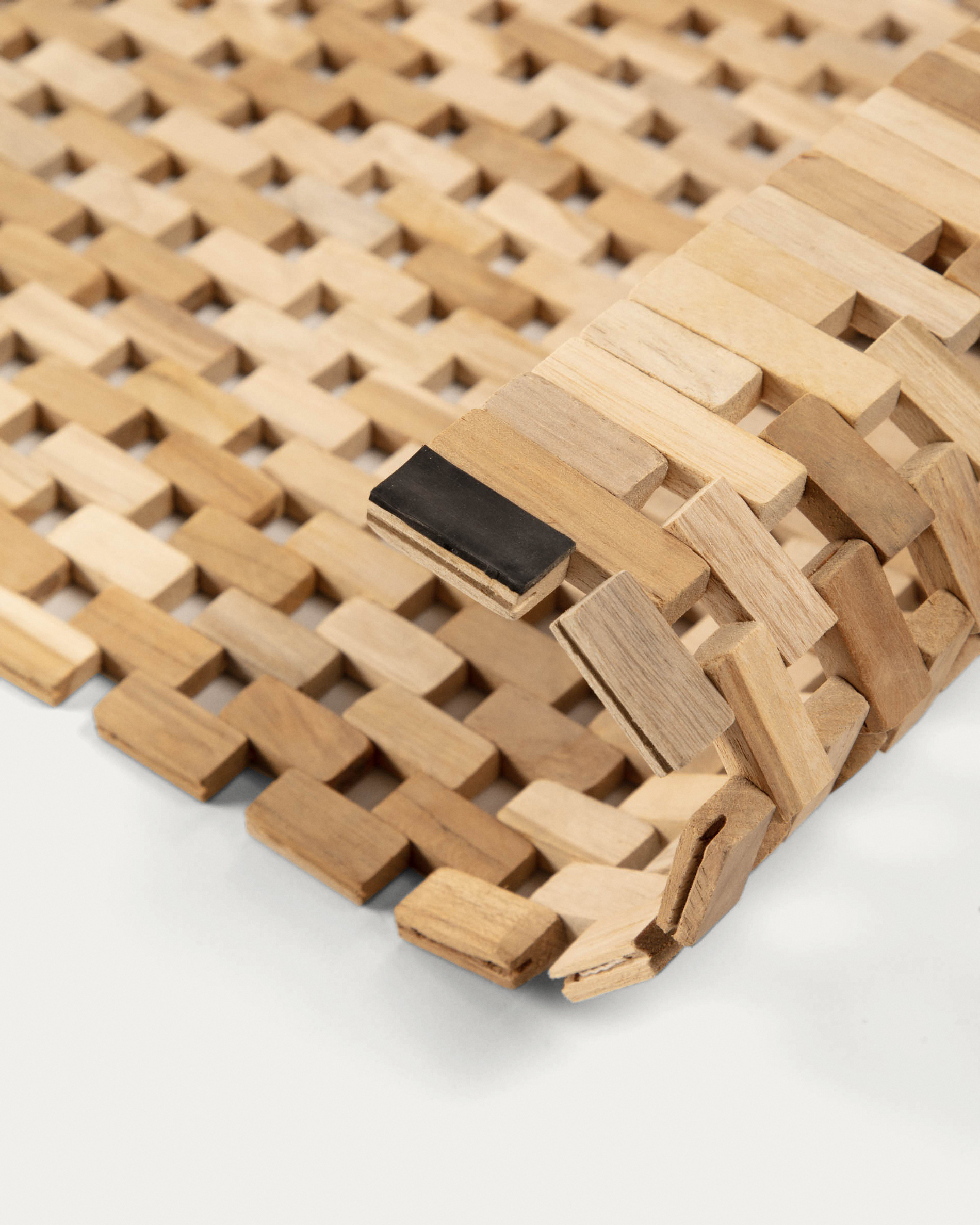 Teak wood is the best option for your bathroom, and it has been used to make the 40 x 60cm Azuray bathmat, with which you will avoid contact with the cold floor. As well as being resistant to moisture and derived micro-organisms, it is very durable and dries quickly. With interlaced rectangular pieces, each one has its own unique veins and tones, forming a different and unique mosaic in each individual bathmat. For your safety, it also has a non-slip plastic system. Enjoy your bath!