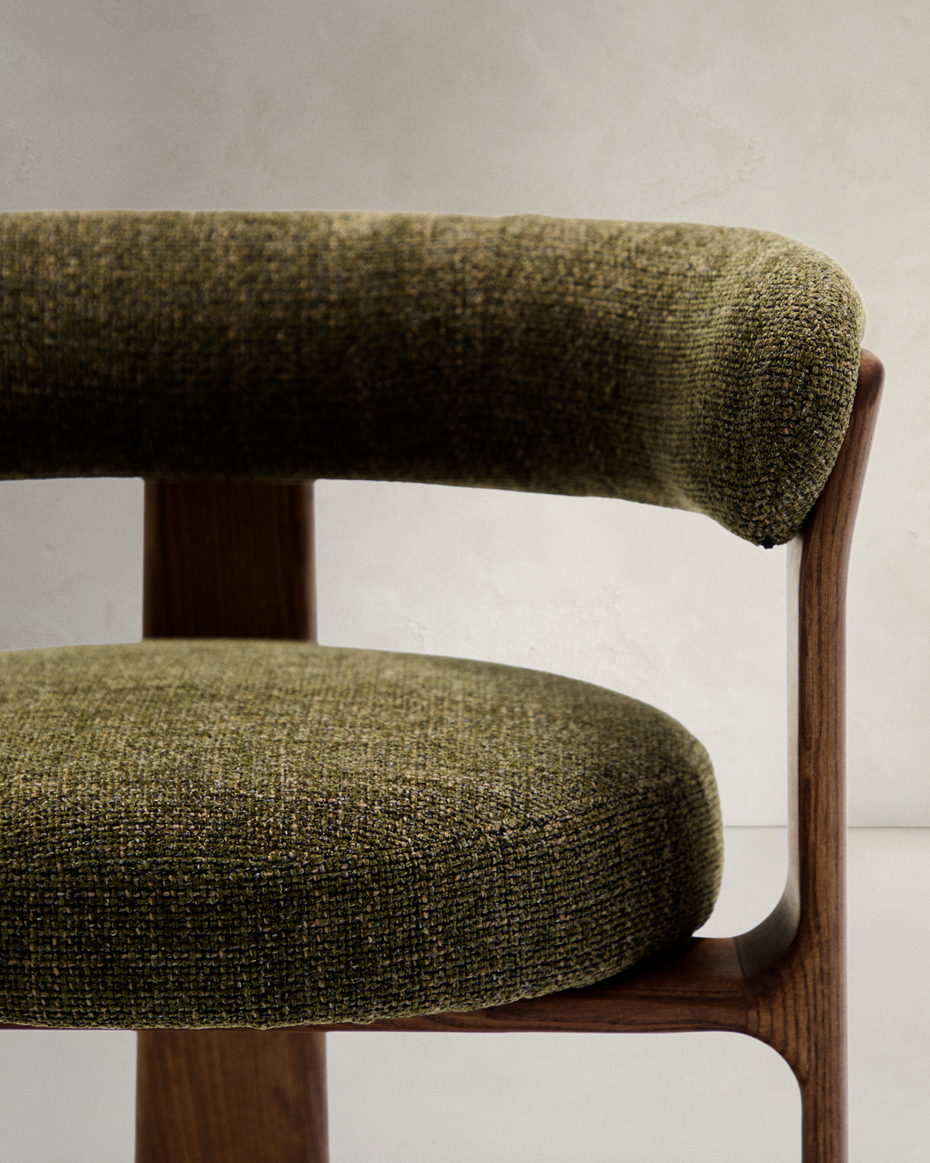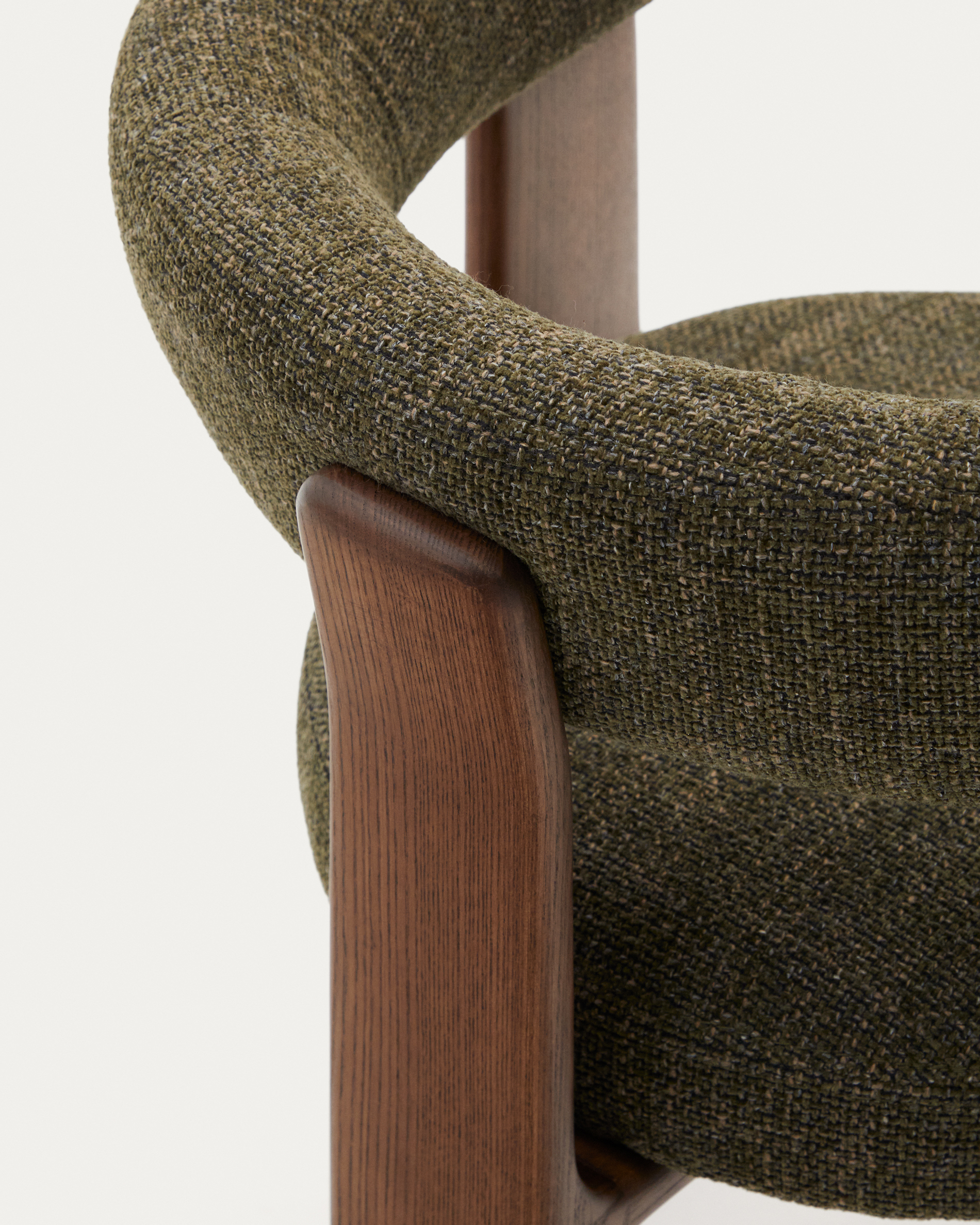 Granite 3-legged chair in green chenille and with solid ash wood in a walnut finish FSC 100%