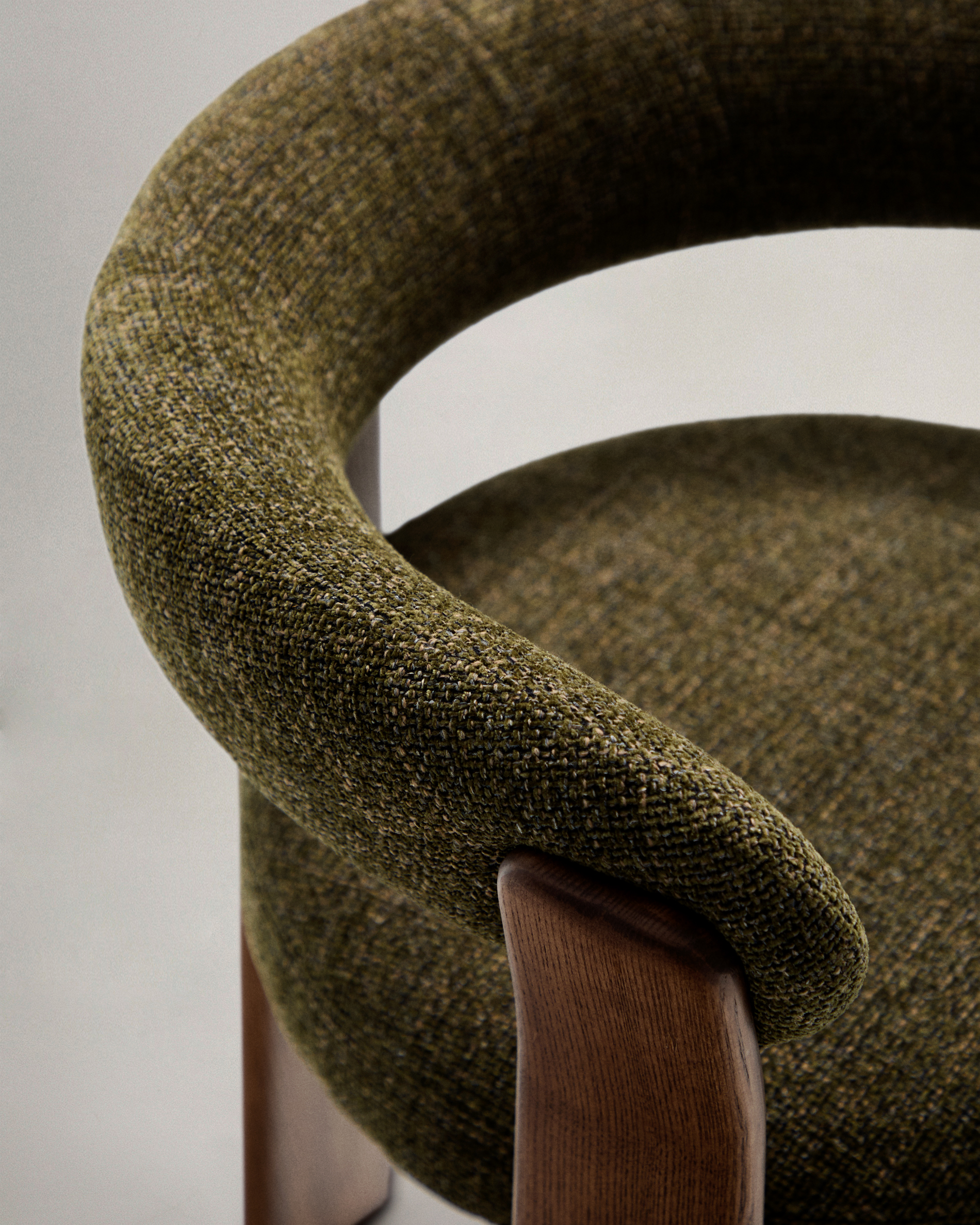 • Chair upholstered in thick, two-tone green chenille with recycled polyester.