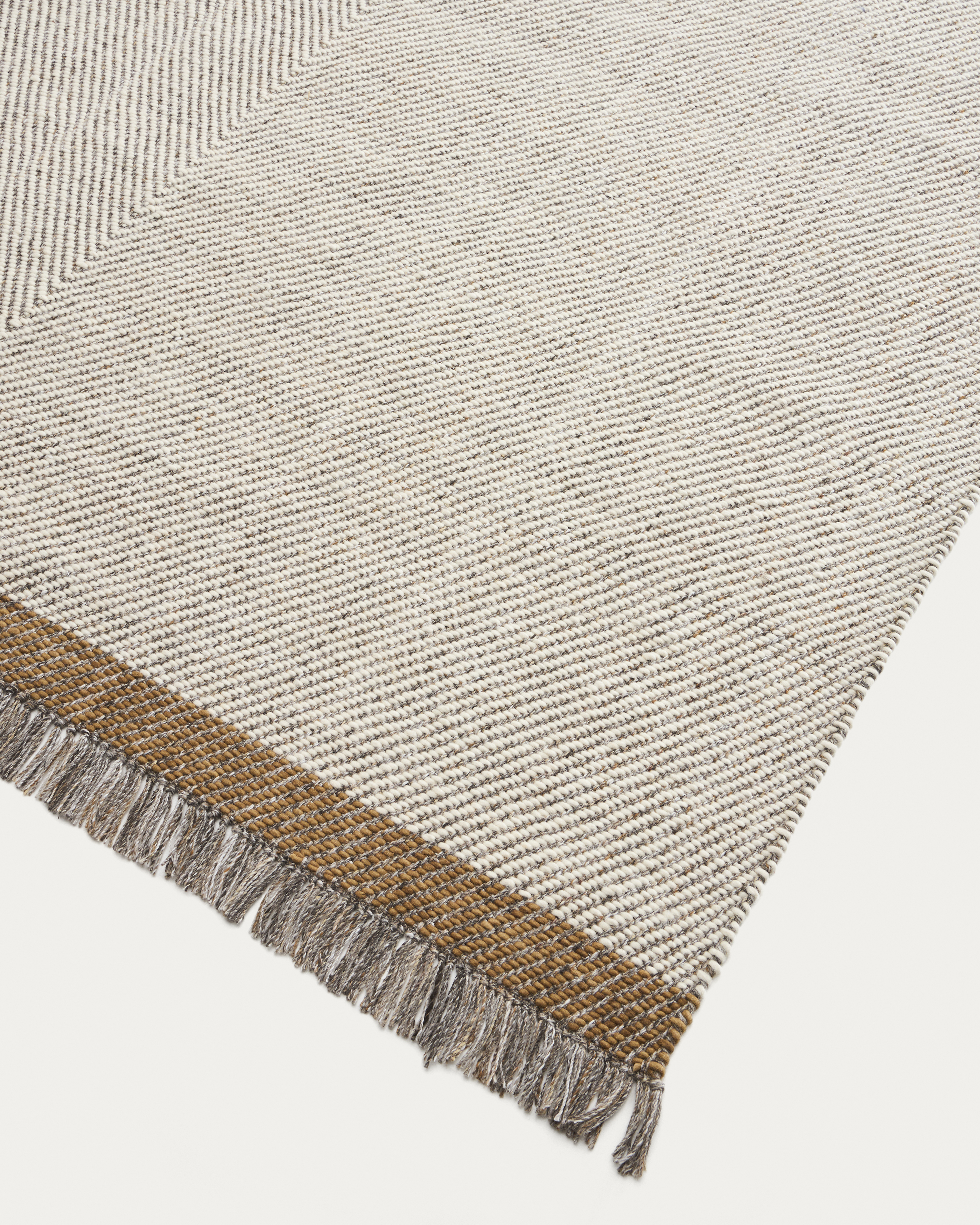 Brina beige herringbone jacquard wool rug 230 x 160cm