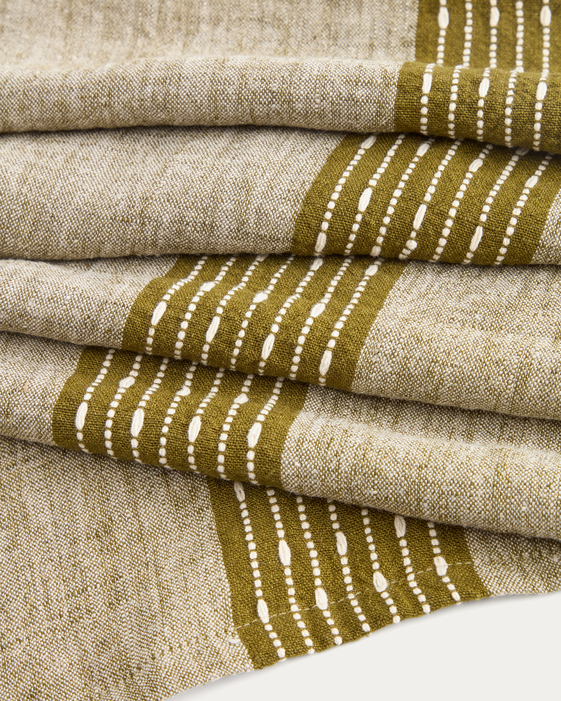• Linen table runner with contrasting jacquard.