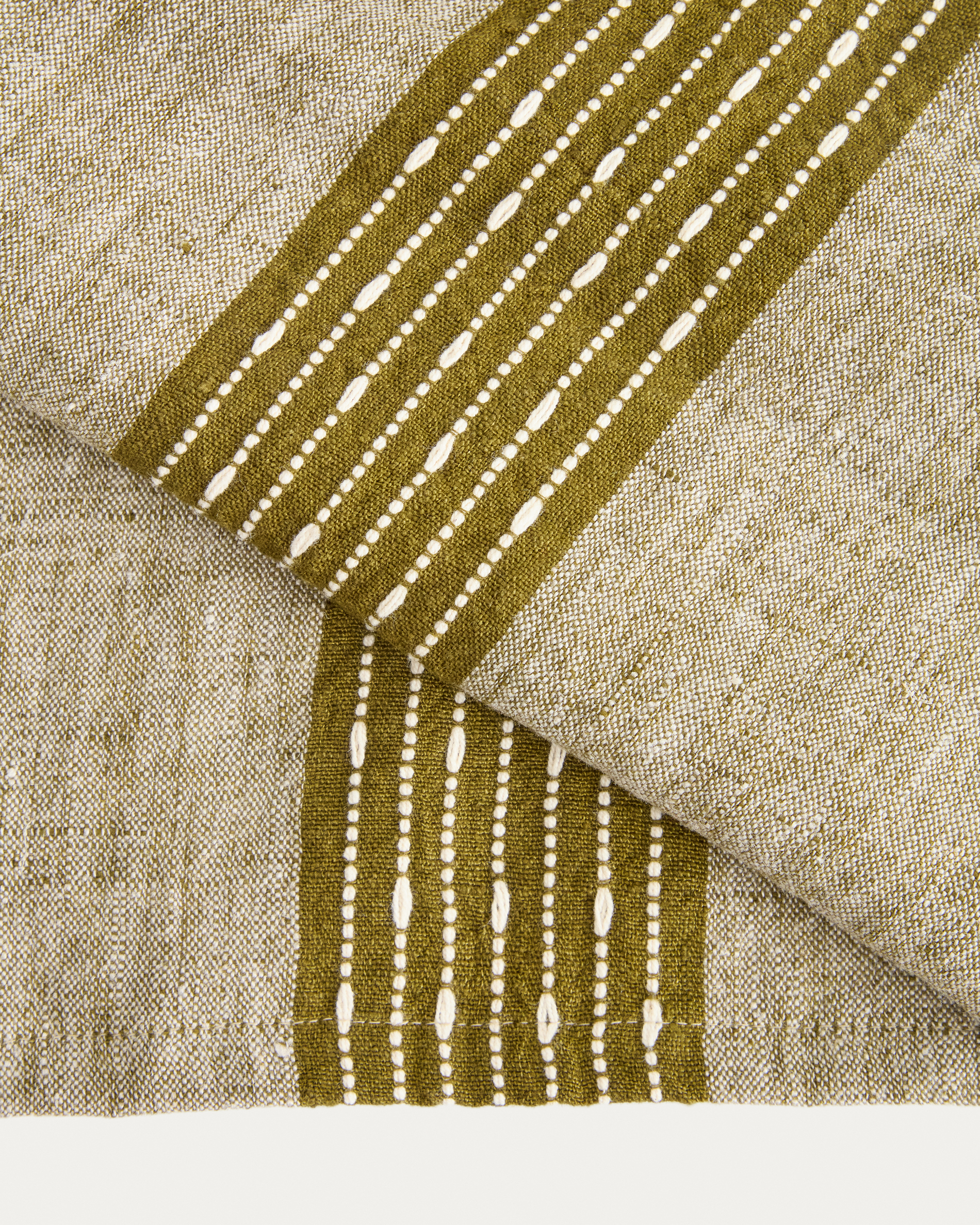 Calena linen jacquard table runner with green central stripe 50 x 150 cm