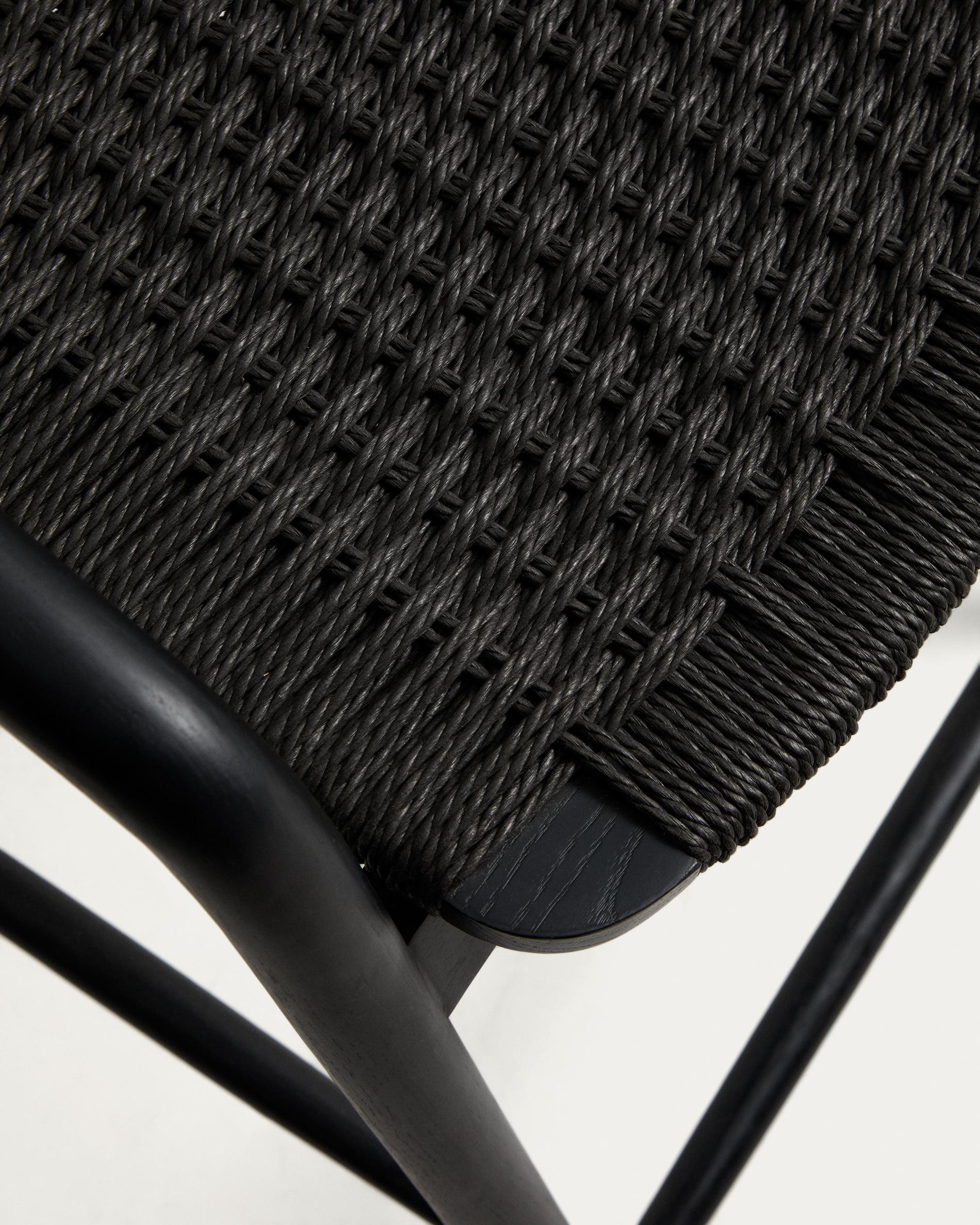 Derile stool in solid oak wood with black finish and black paper rope cord FSC 100% 65cm