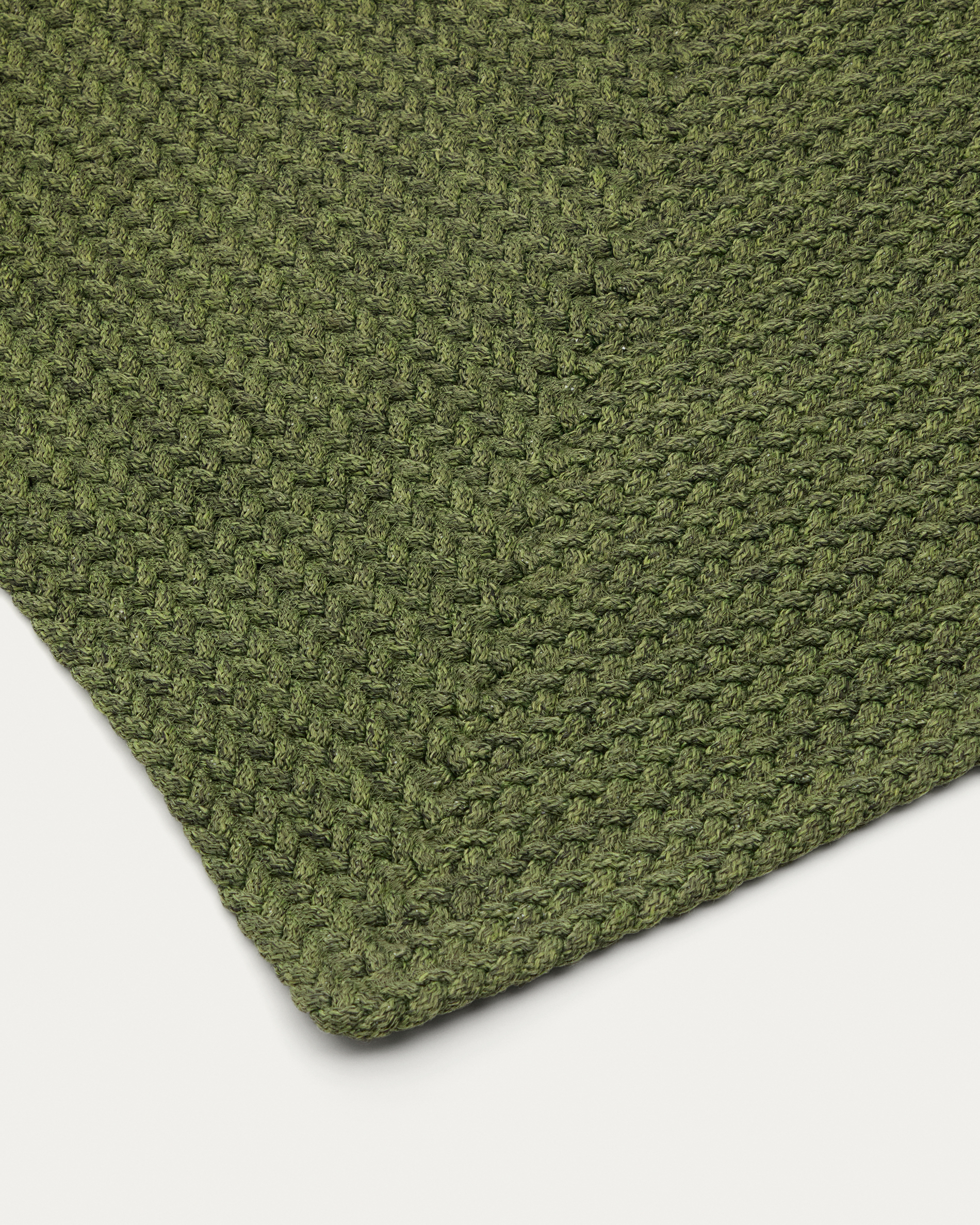The Despas rug is made of hand-woven synthetic fibres, which gives it texture and a neat finish. Its design and materials offer a resistant surface both indoors and outdoors. The synthetic fibres are easy to clean and retain their appearance when exposed to temperature changes. As a handmade piece, it may have slight variations that give it a unique character.