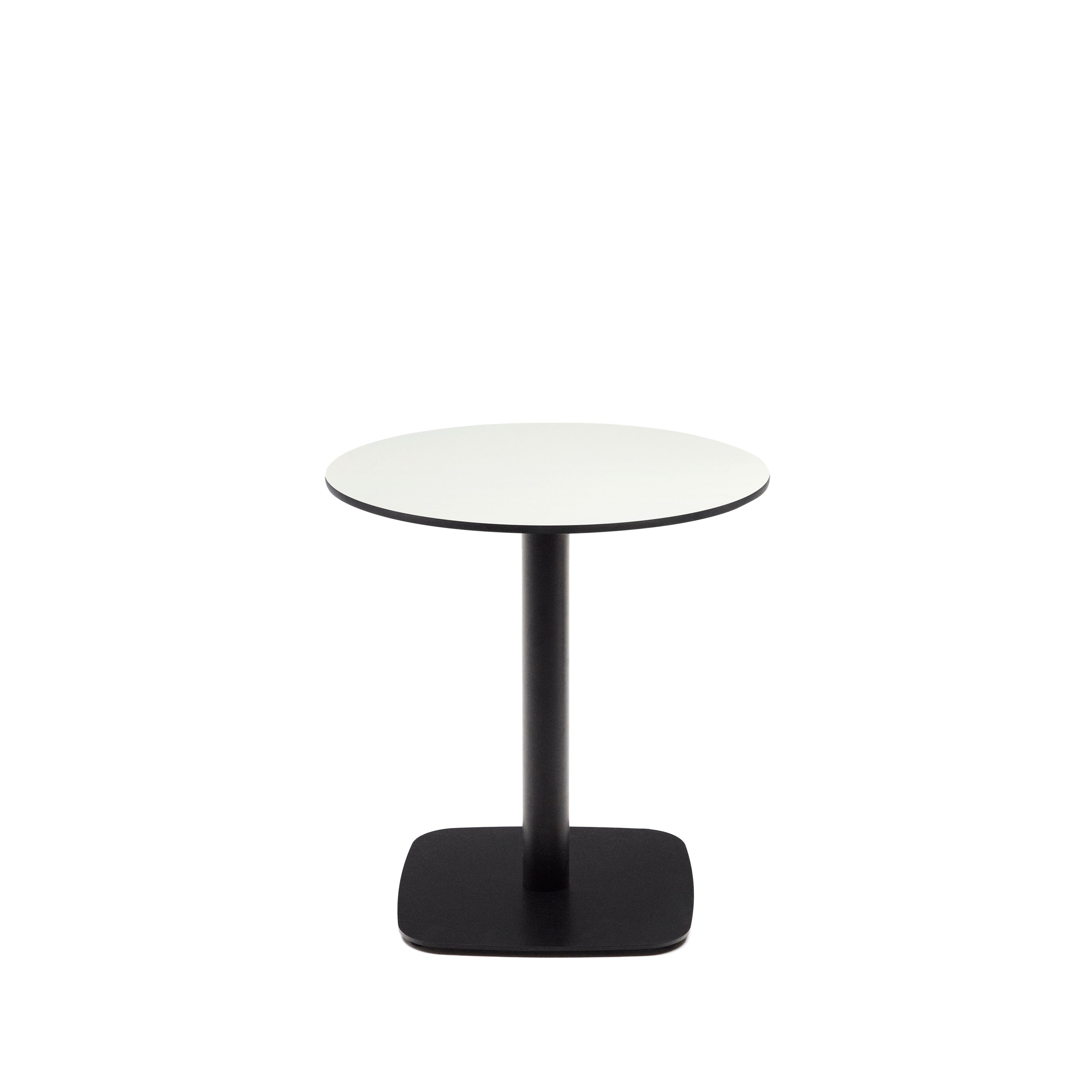 Dina round outdoor table in white with metal legal in a painted black finish, Ø 68x70 cm