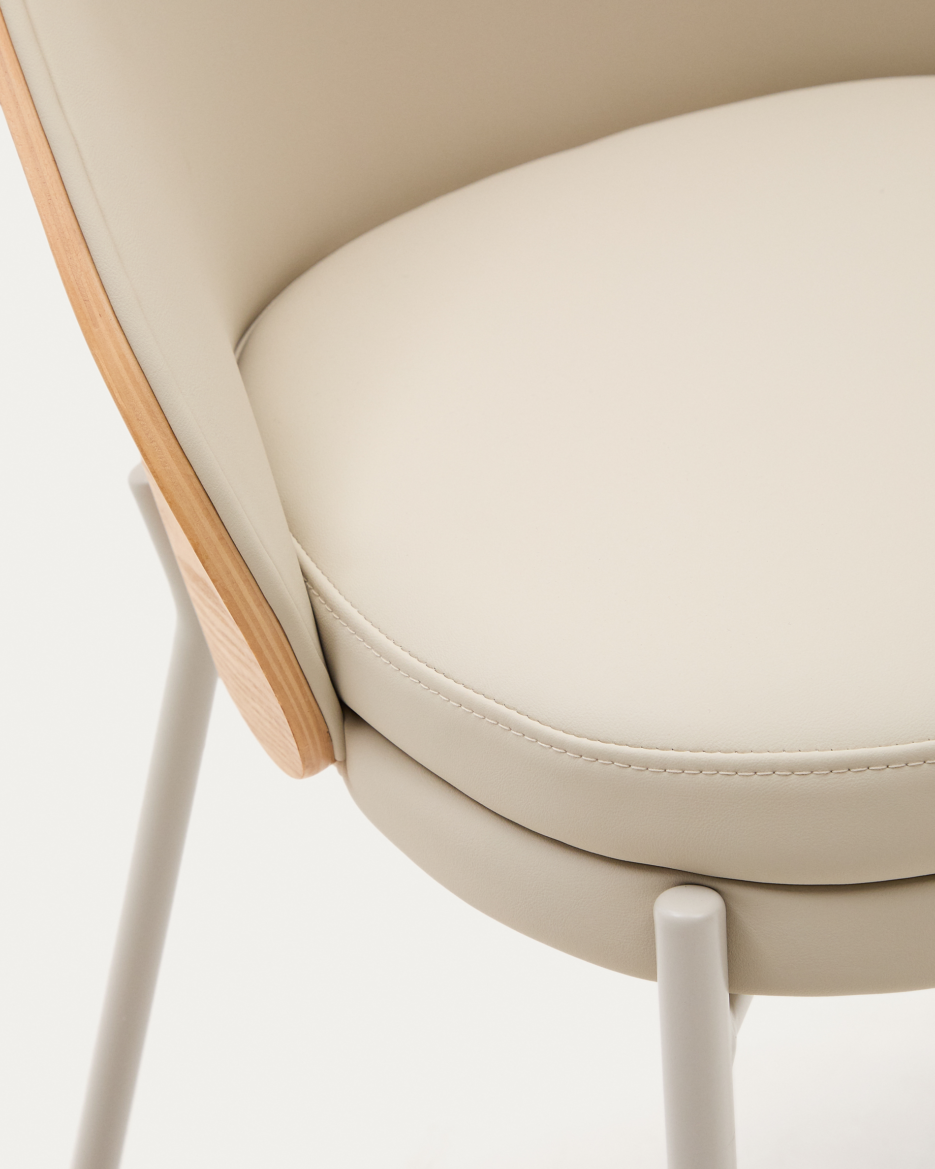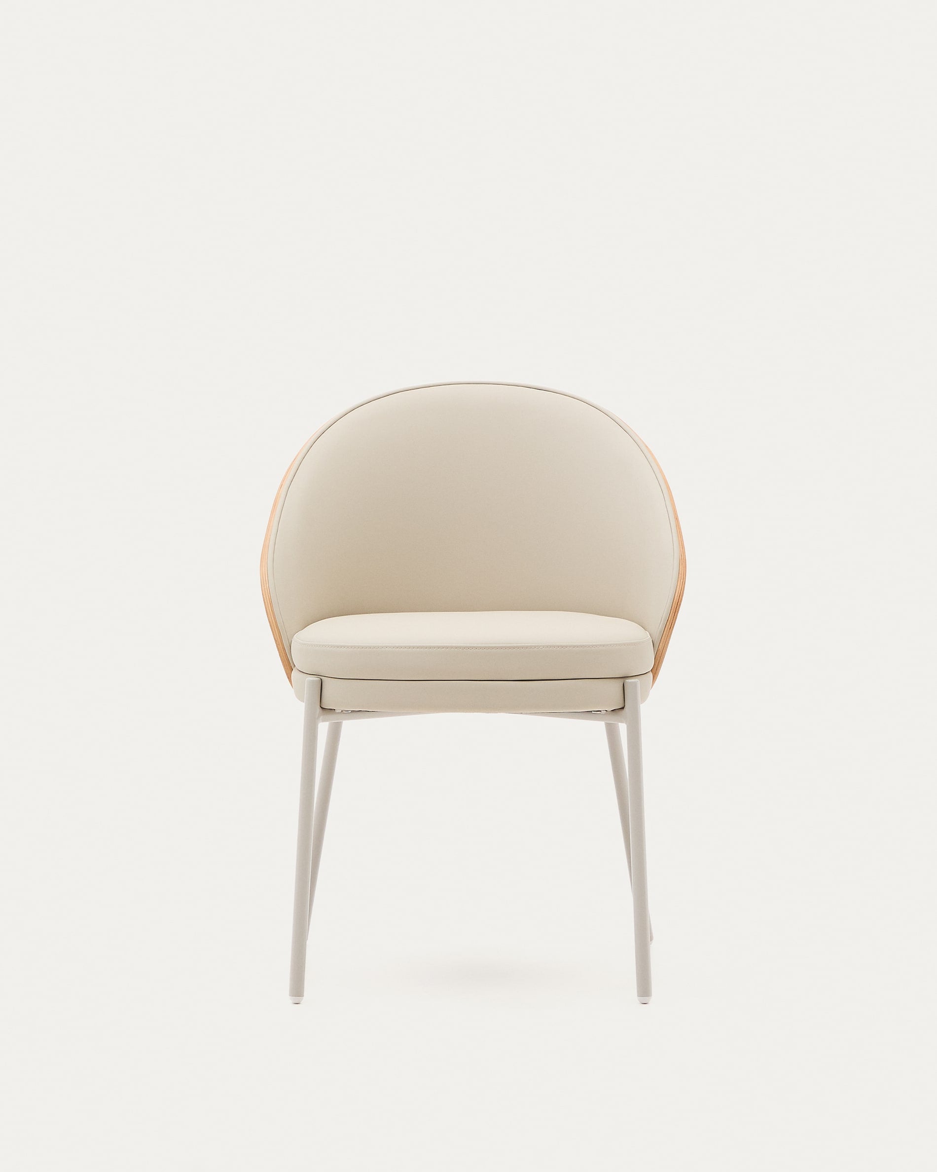Eamy beige faux leather chair, ash veneer with natural finish and beige metal