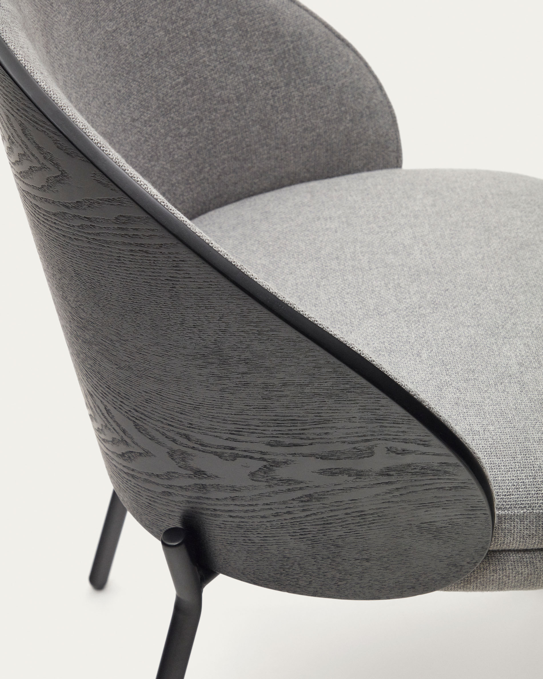Eamy chair light grey chenilla and ash wood veneer with a black finish and black metal