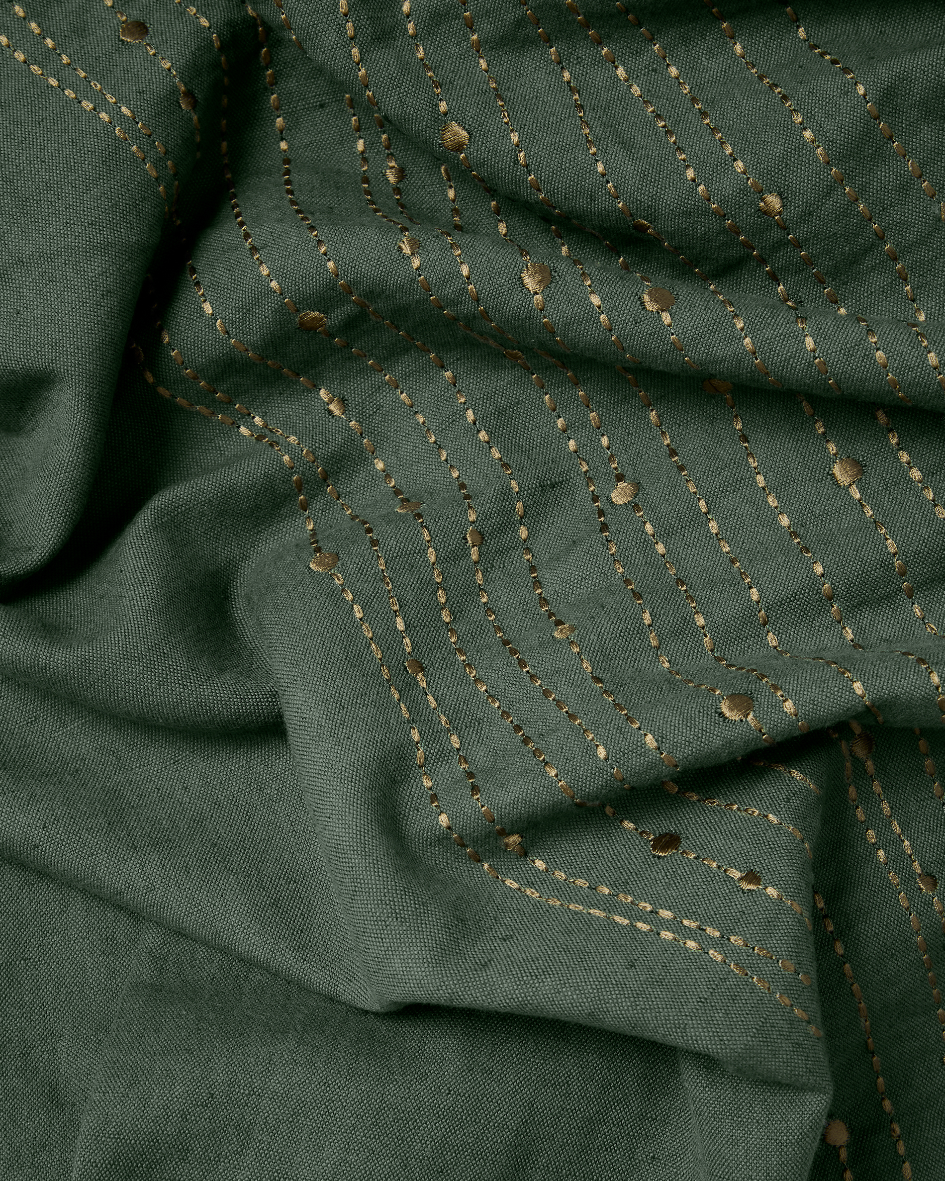 • Linen and cotton tablecloth with green lurex embroidery
