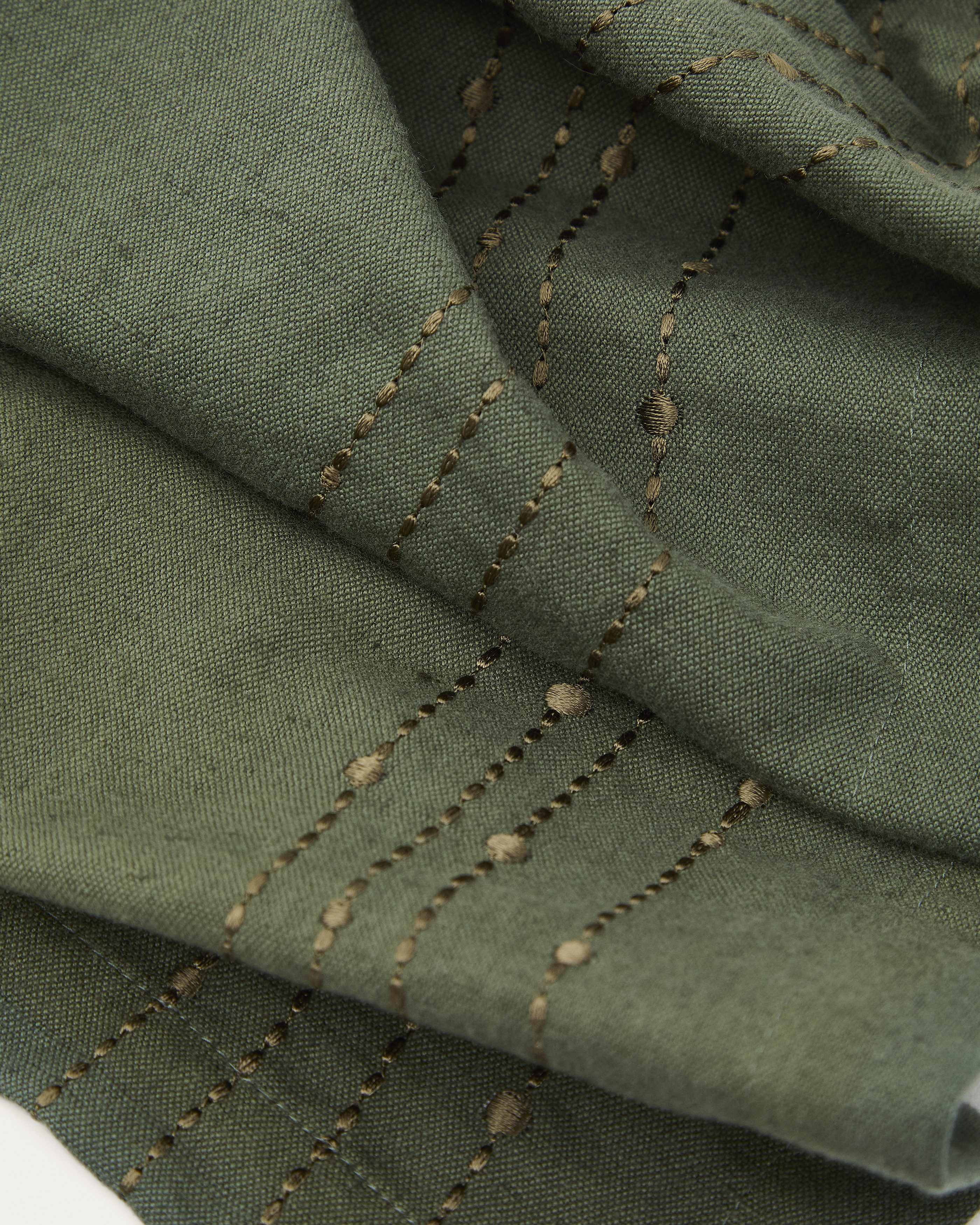 Flia set of 2 green linen and cotton napkins with gold lurex embroidery detail 30 x 30cm
