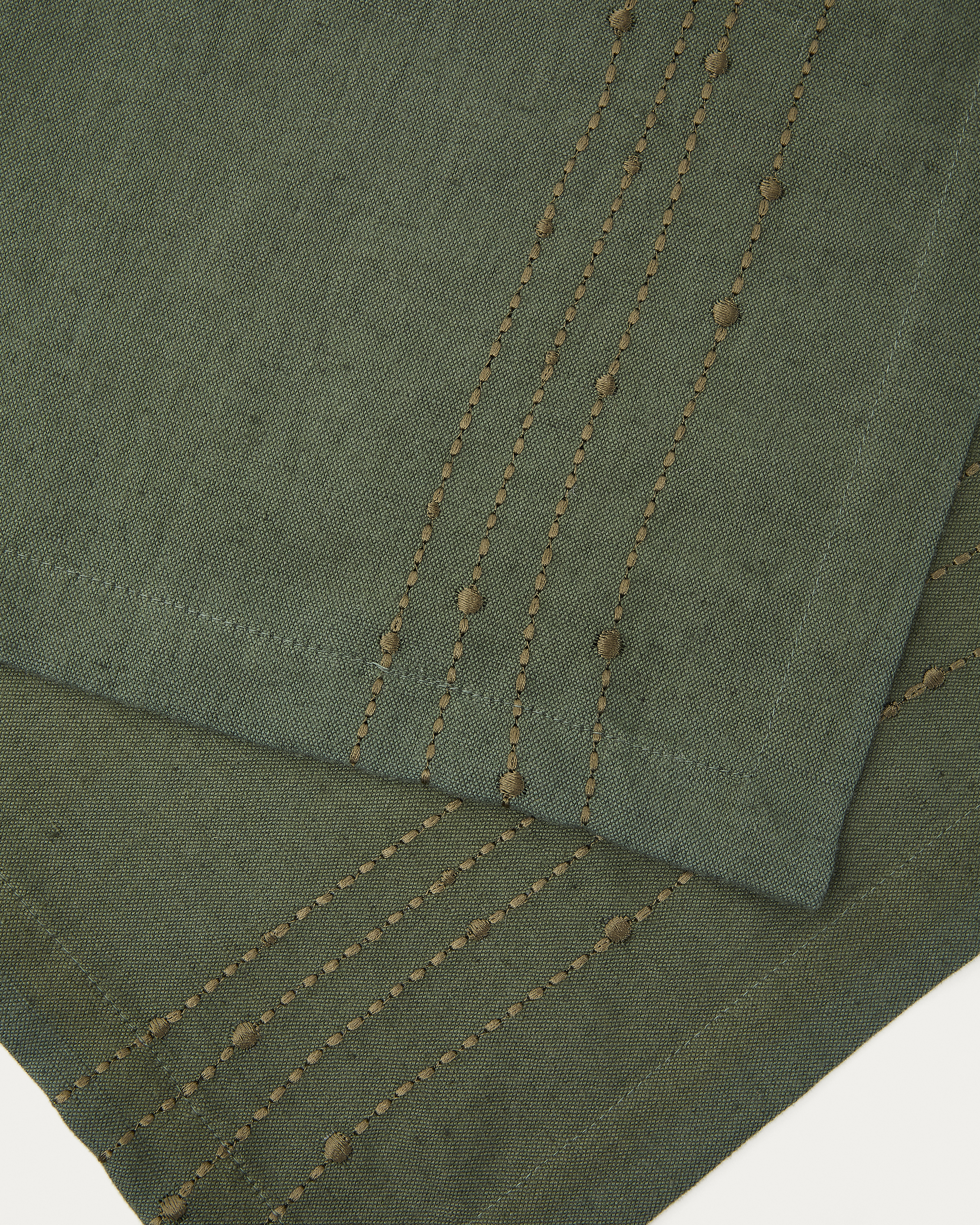 • Set of 2 linen and cotton napkins with green lurex embroidery