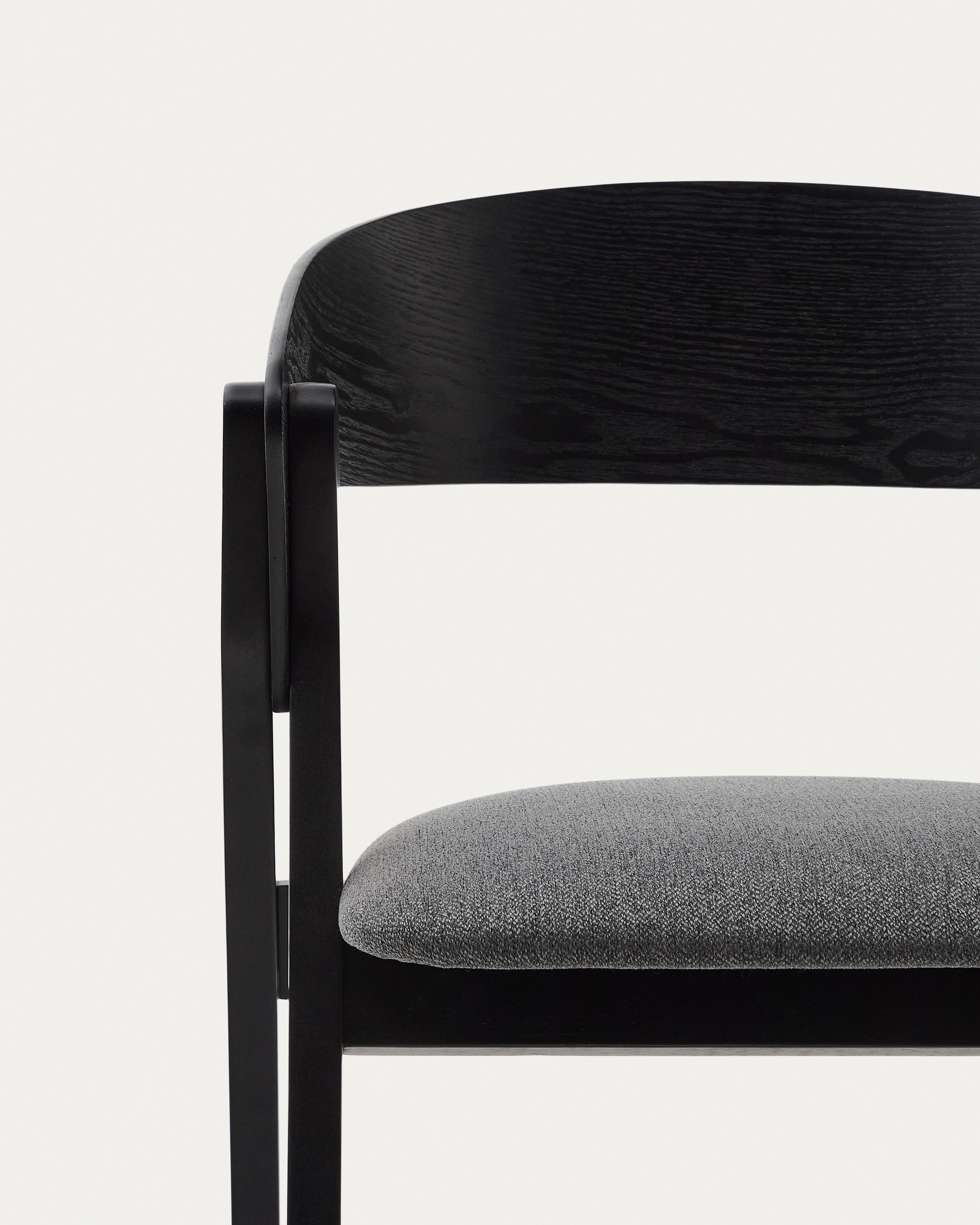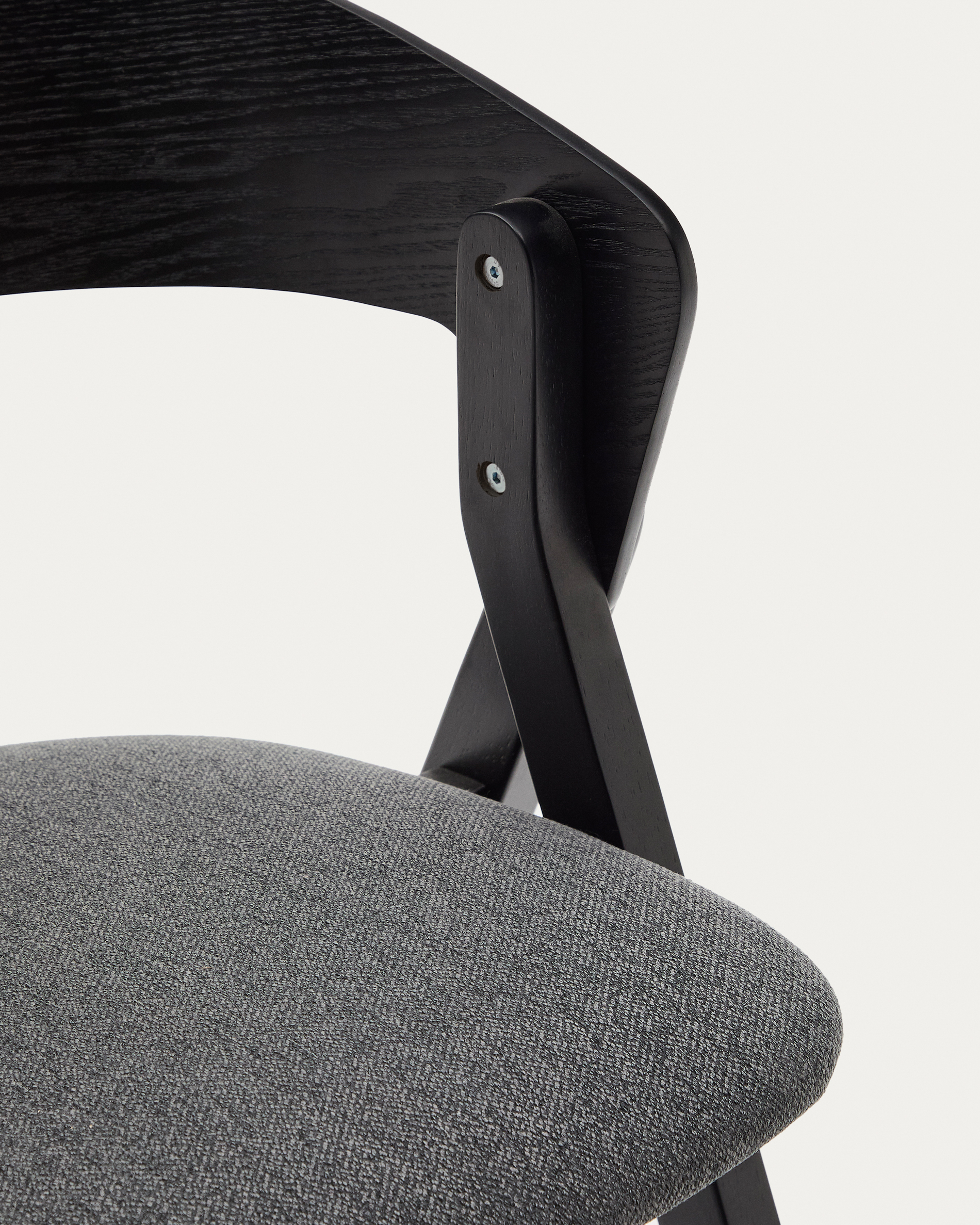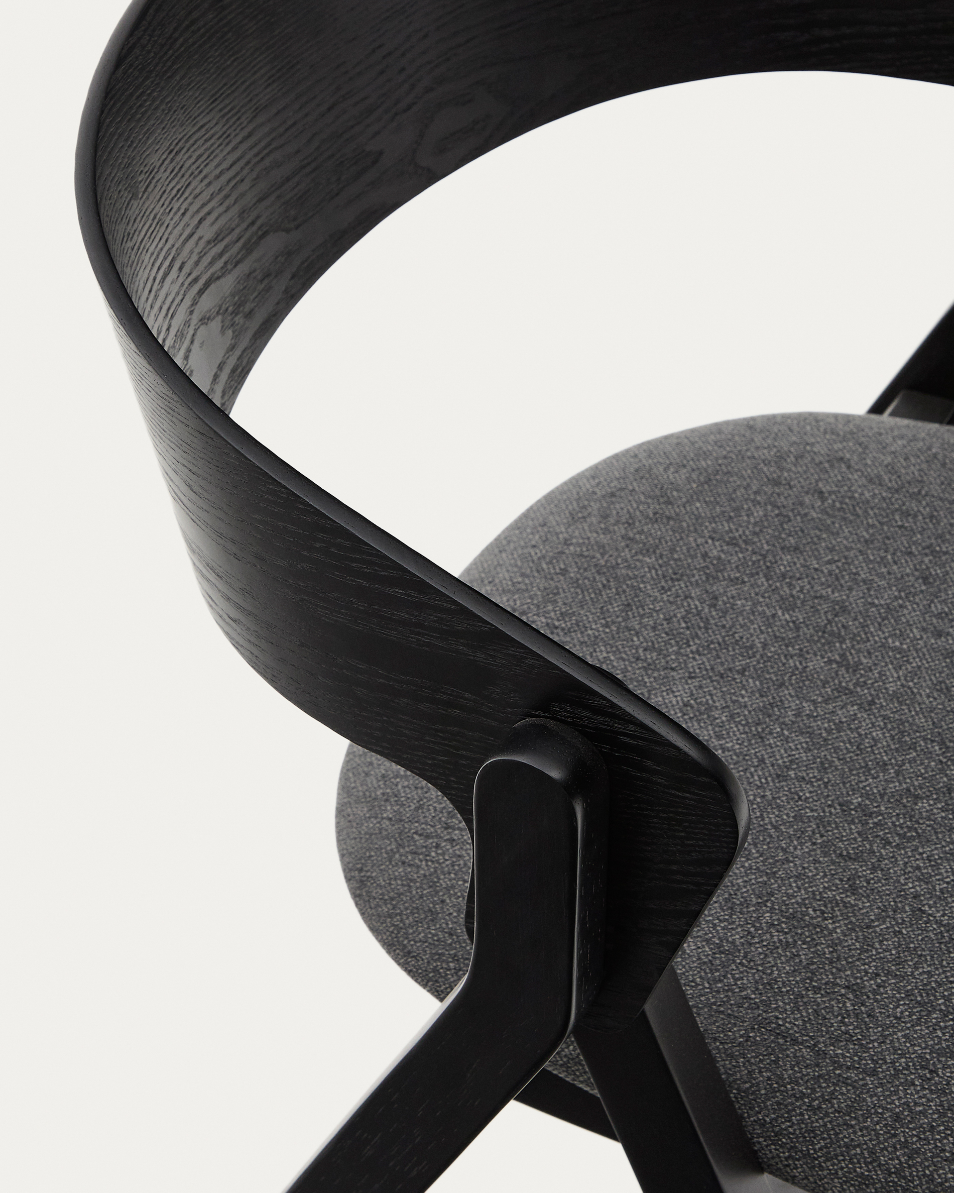 • Upholstered seat in dark gray chenille with a fine structure, made from recycled polyester.