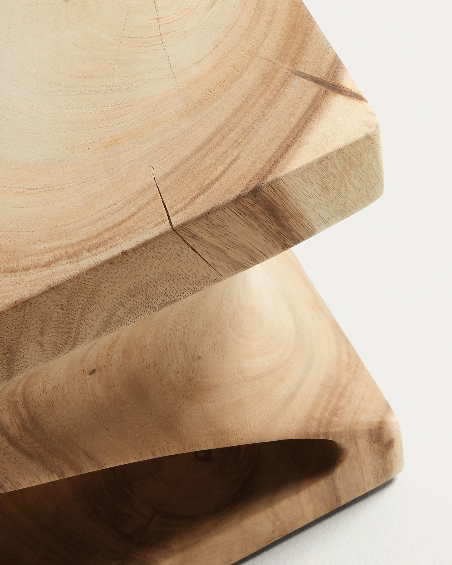 Hakon solid rain tree wood side table with carved interior, 30 x 30 cm