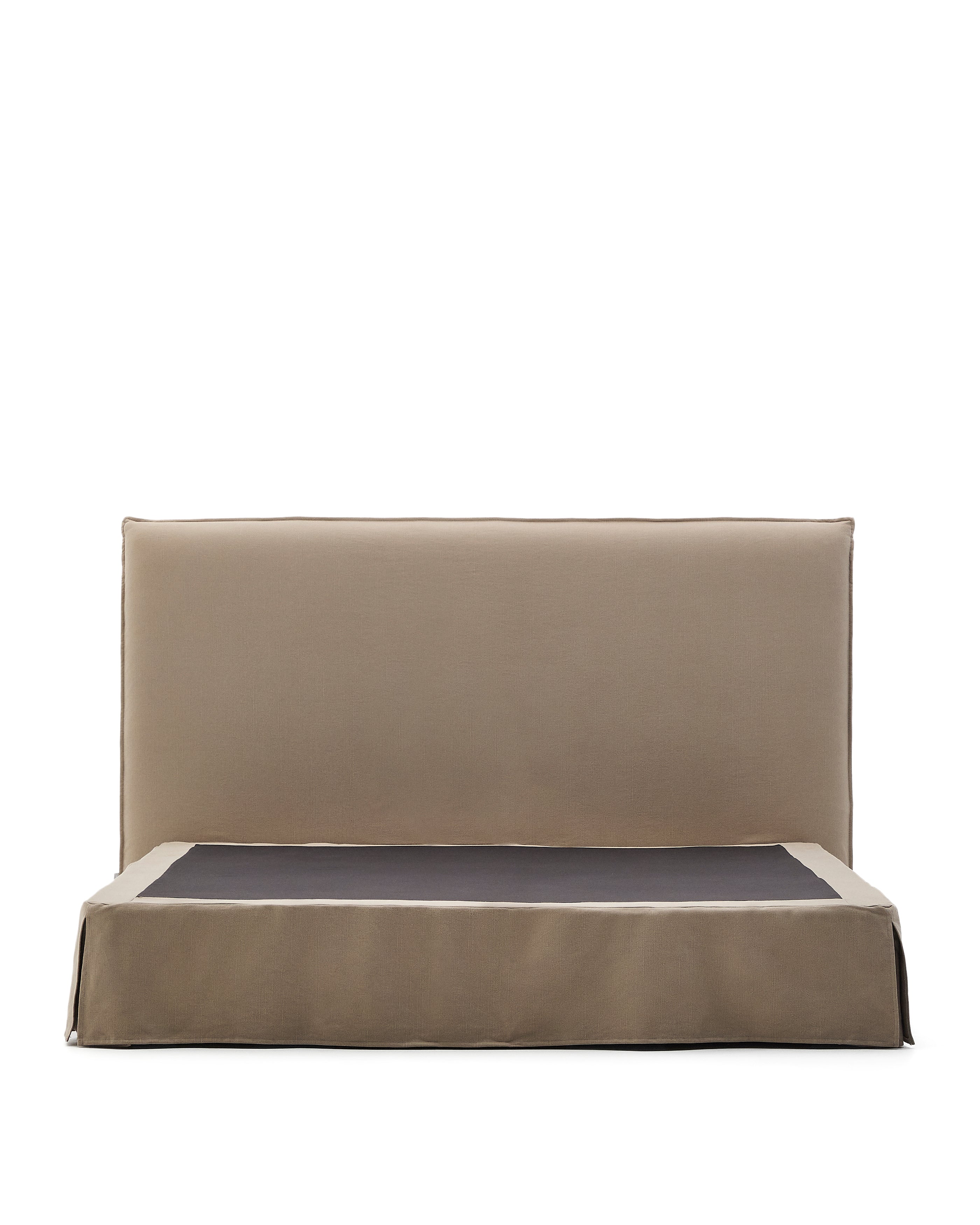 Jaira linen and cotton bed base cover in taupe for a 180 x 200 cm mattress