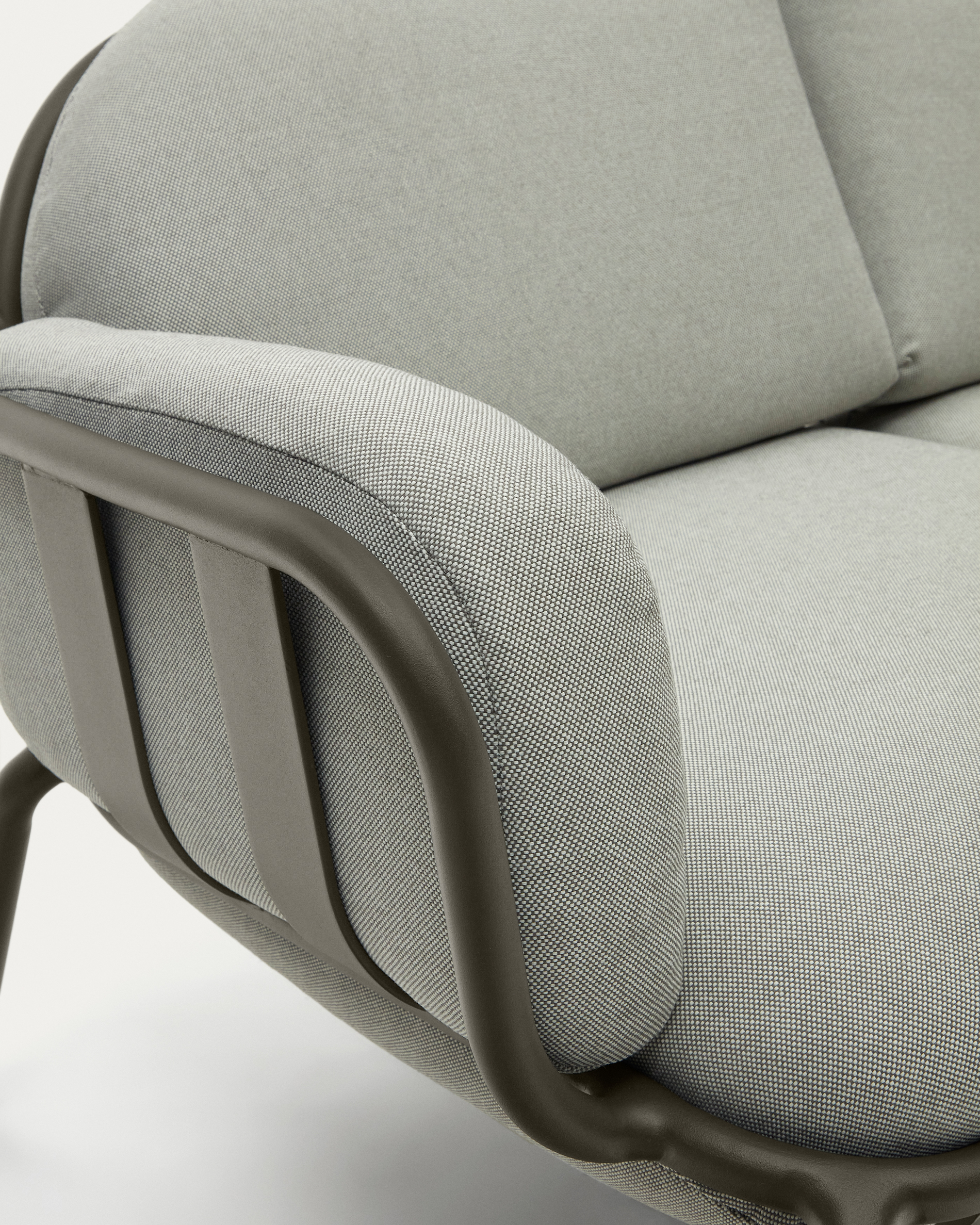 Joncols outdoor 2-seater sofa with grey upholstery and aluminium with green painted finish 164cm