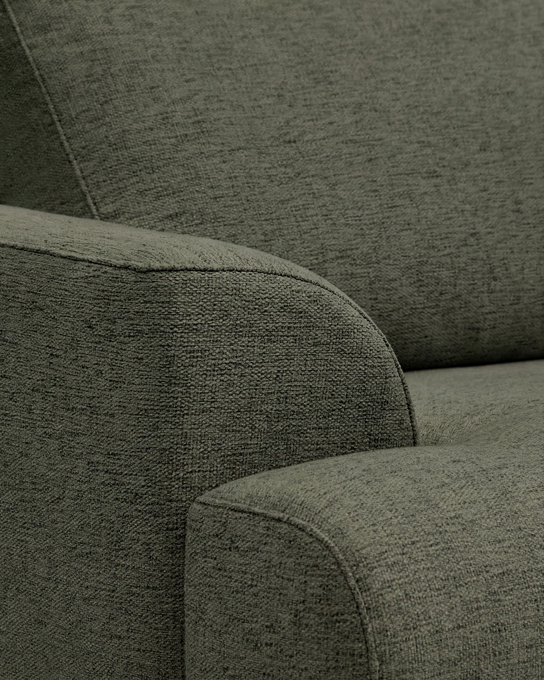 • 2-seater sofa upholstered in structured fabric with high abrasion resistance and suitable for machine washing. Solid beech wood legs with a walnut-tone finish.