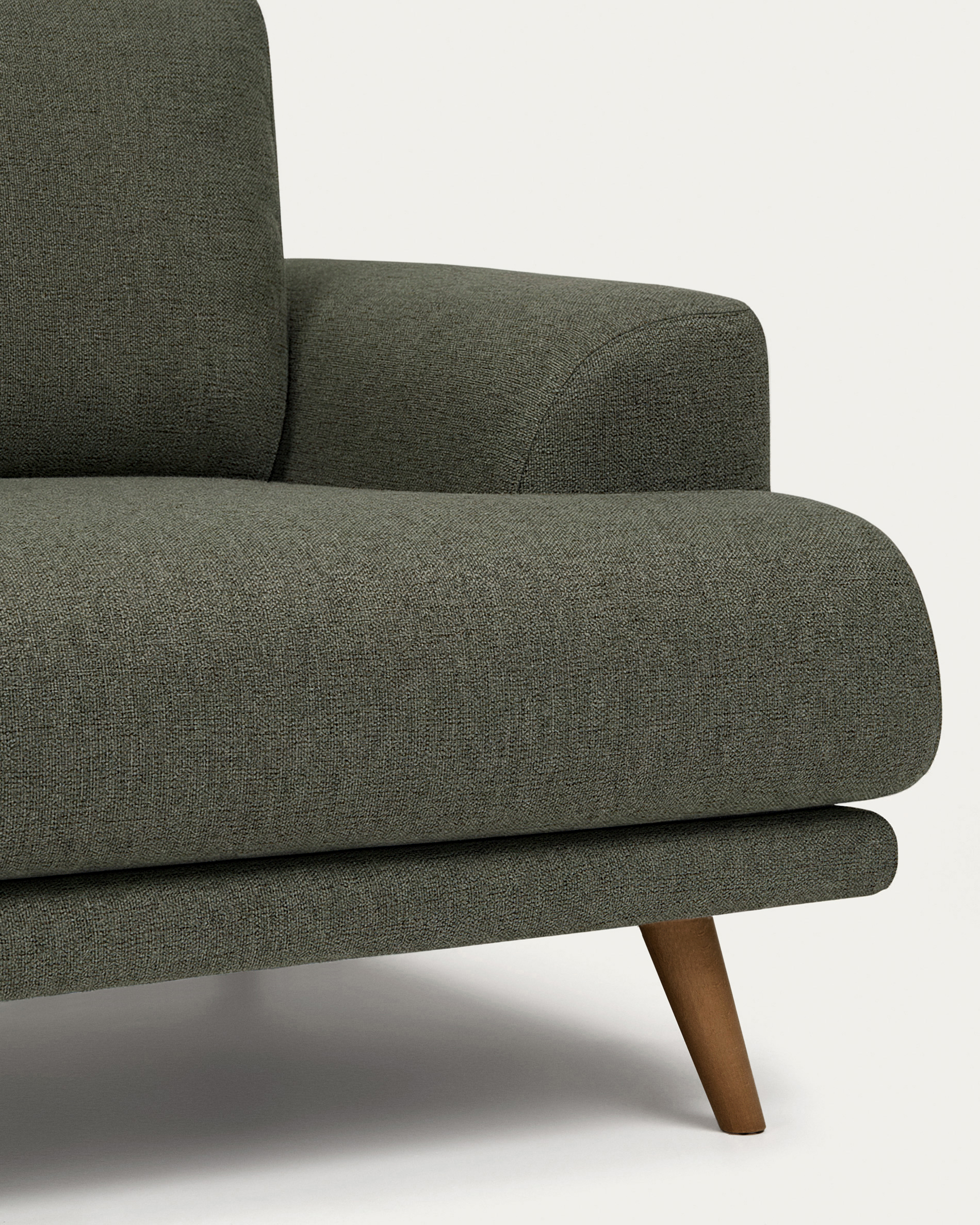 Karin 2-seater sofa in dark green chenille with solid beech wood legs in walnut-tone finish 211 cm