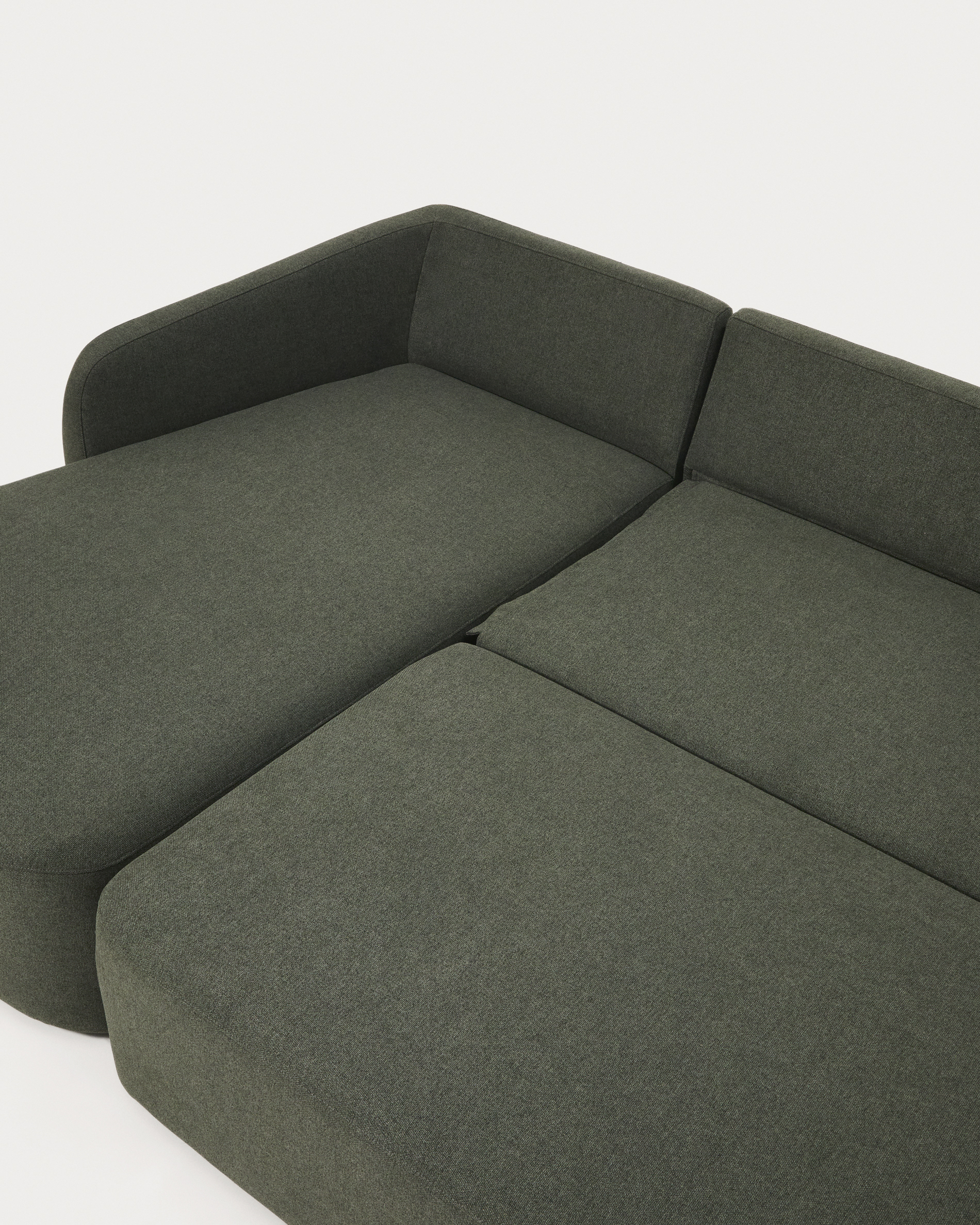 Laira 3-seater sofa bed with left chaise longue in dark green chenille 246cm FSC Mix Credit