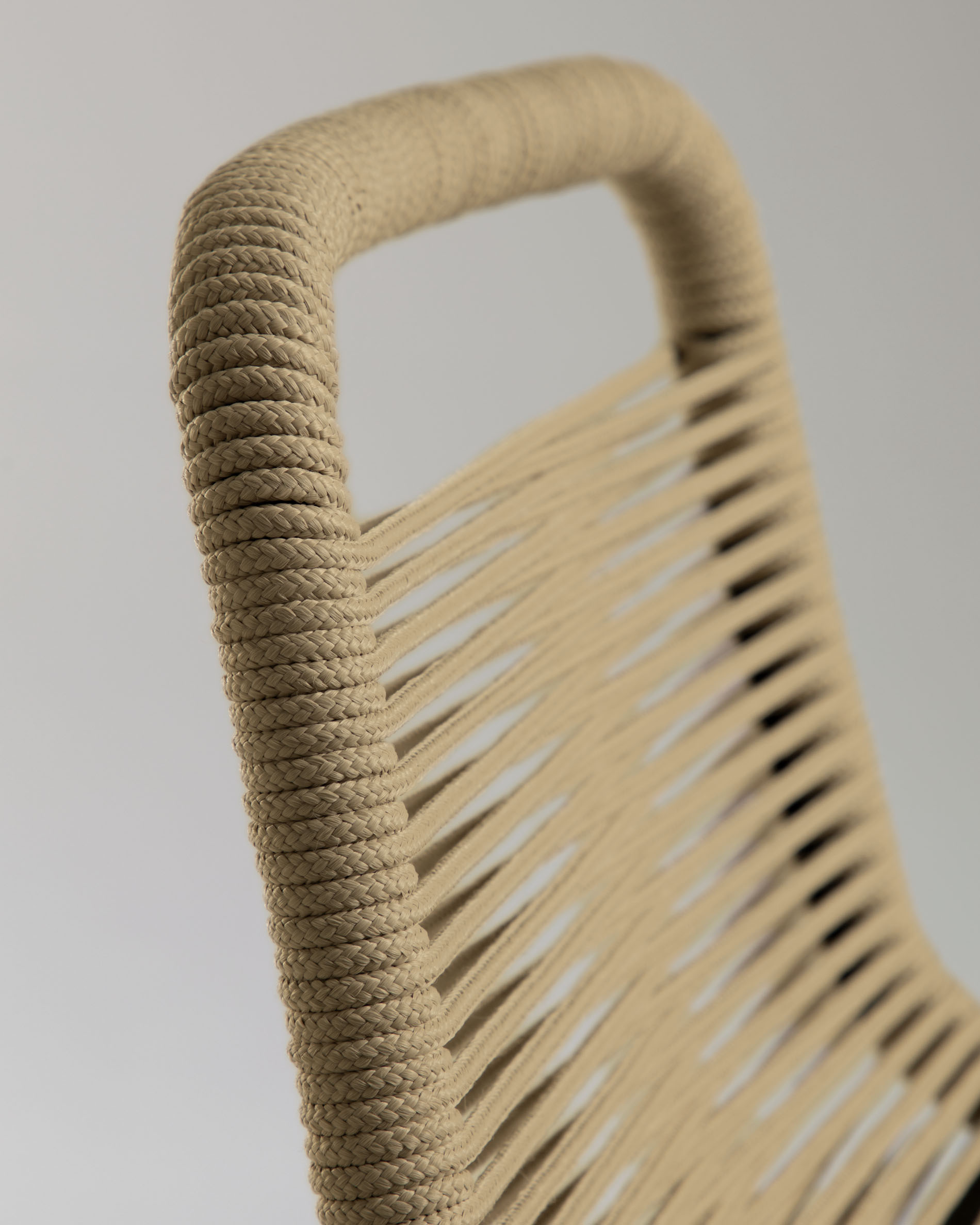 Lambton stackable stool in brown rope and black finish steel, 62 cm