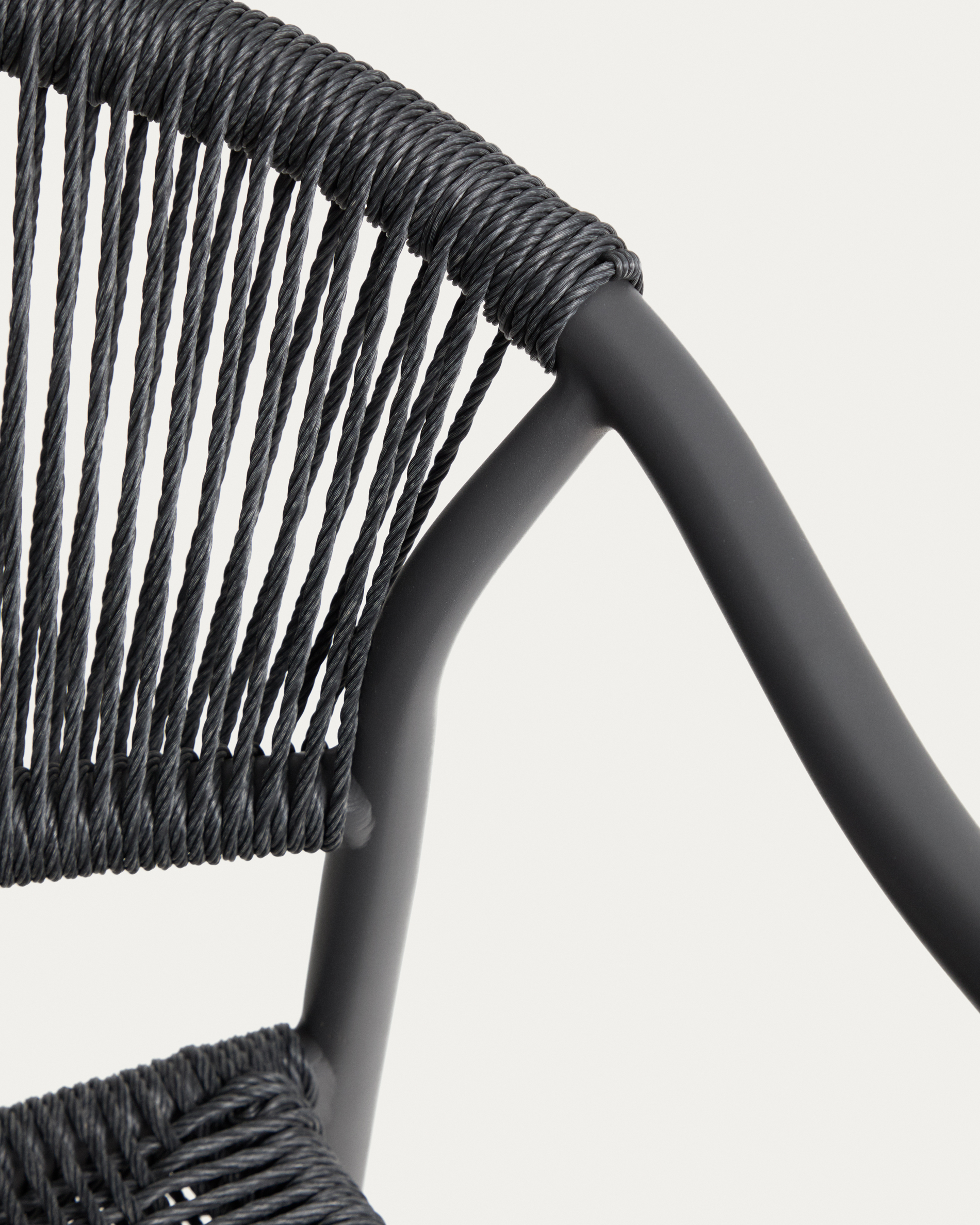 • Hand-woven Hand-woven synthetic rope cord backrest and seat suitable for outdoor use.