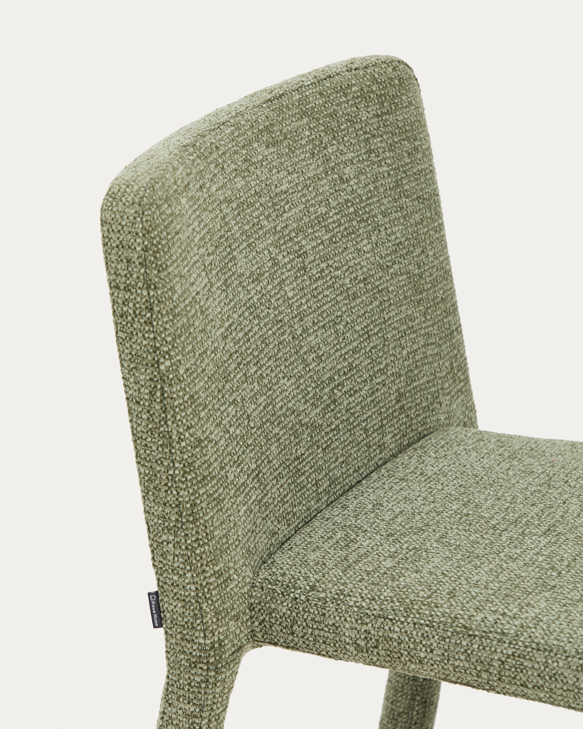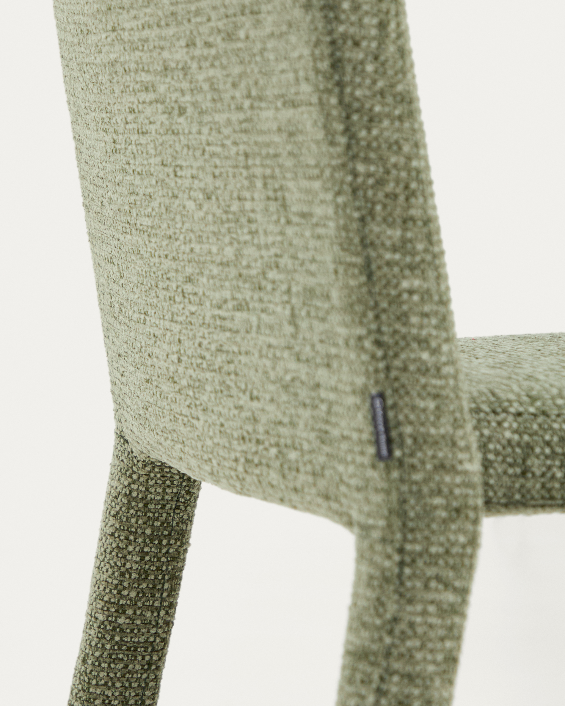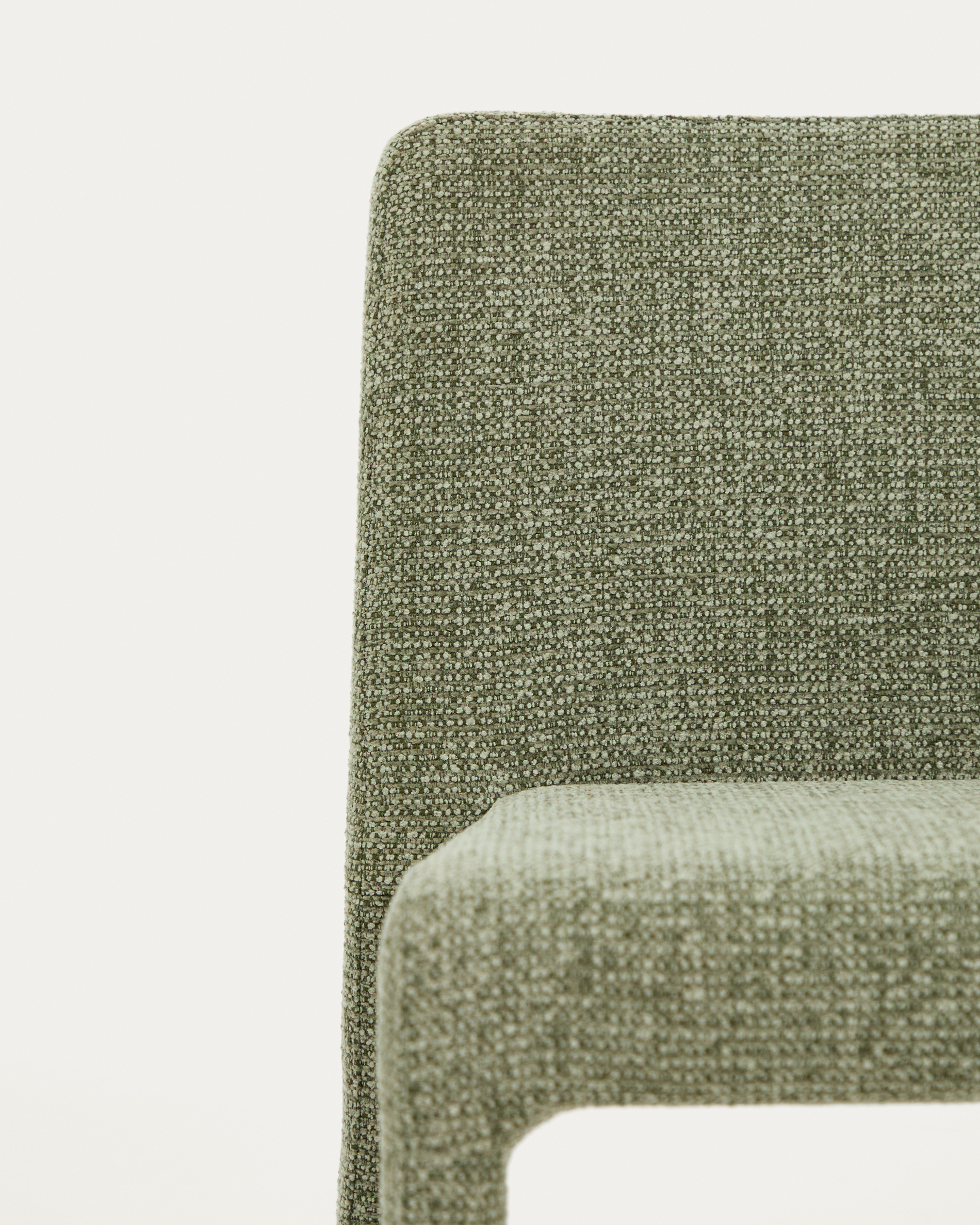 • Stackable chair upholstered in 3D-effect structured chenille fabric with C0 water-repellent treatment.