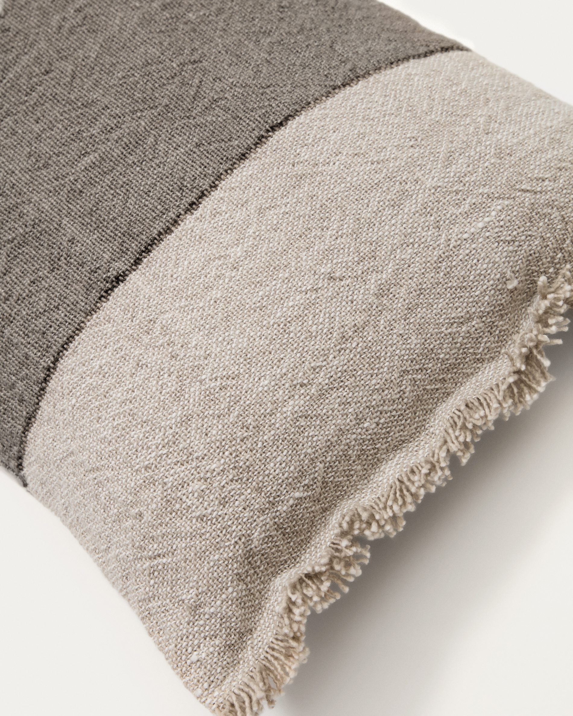 Lorin green linen and cotton cushion cover with fringing 30 x 50cm