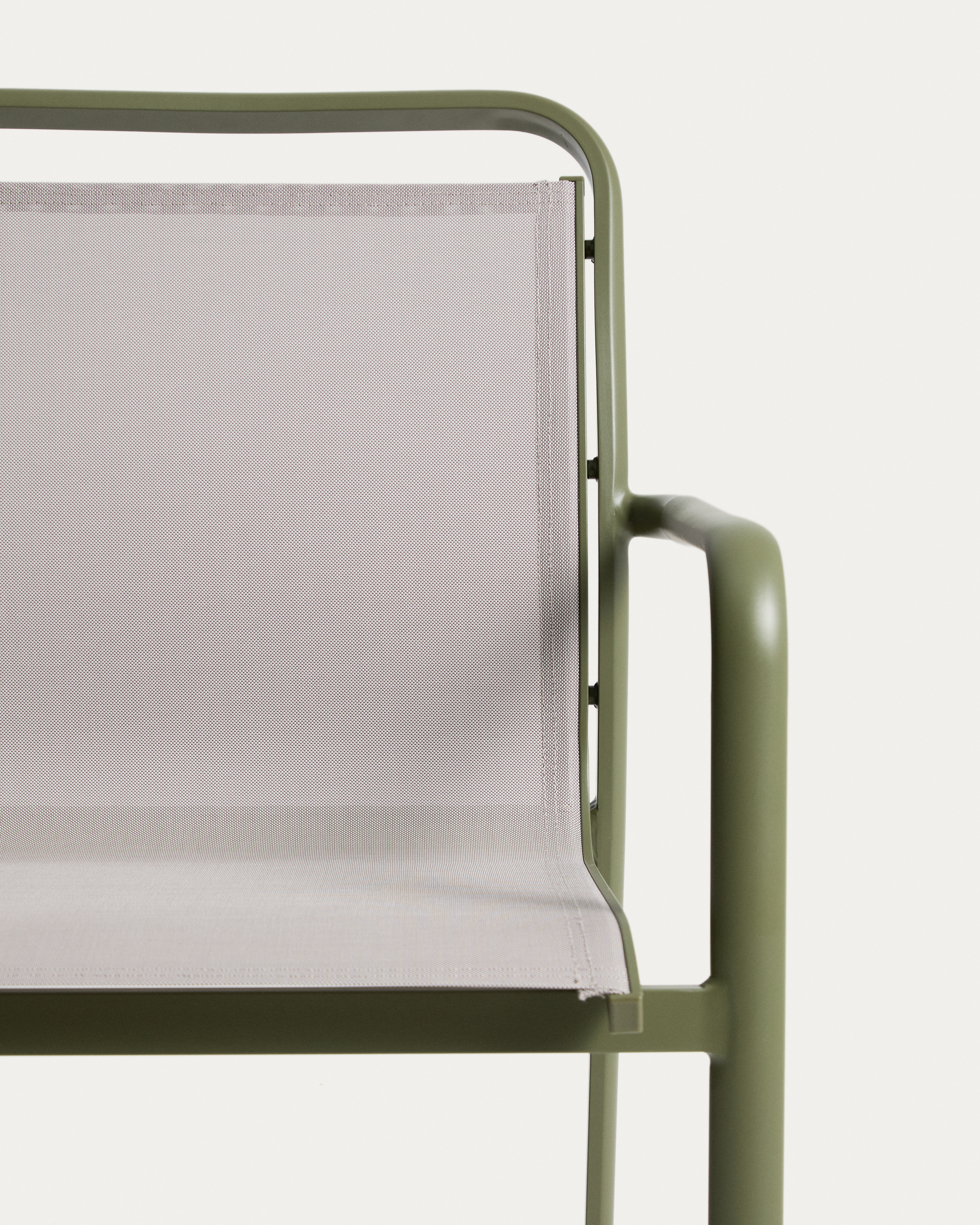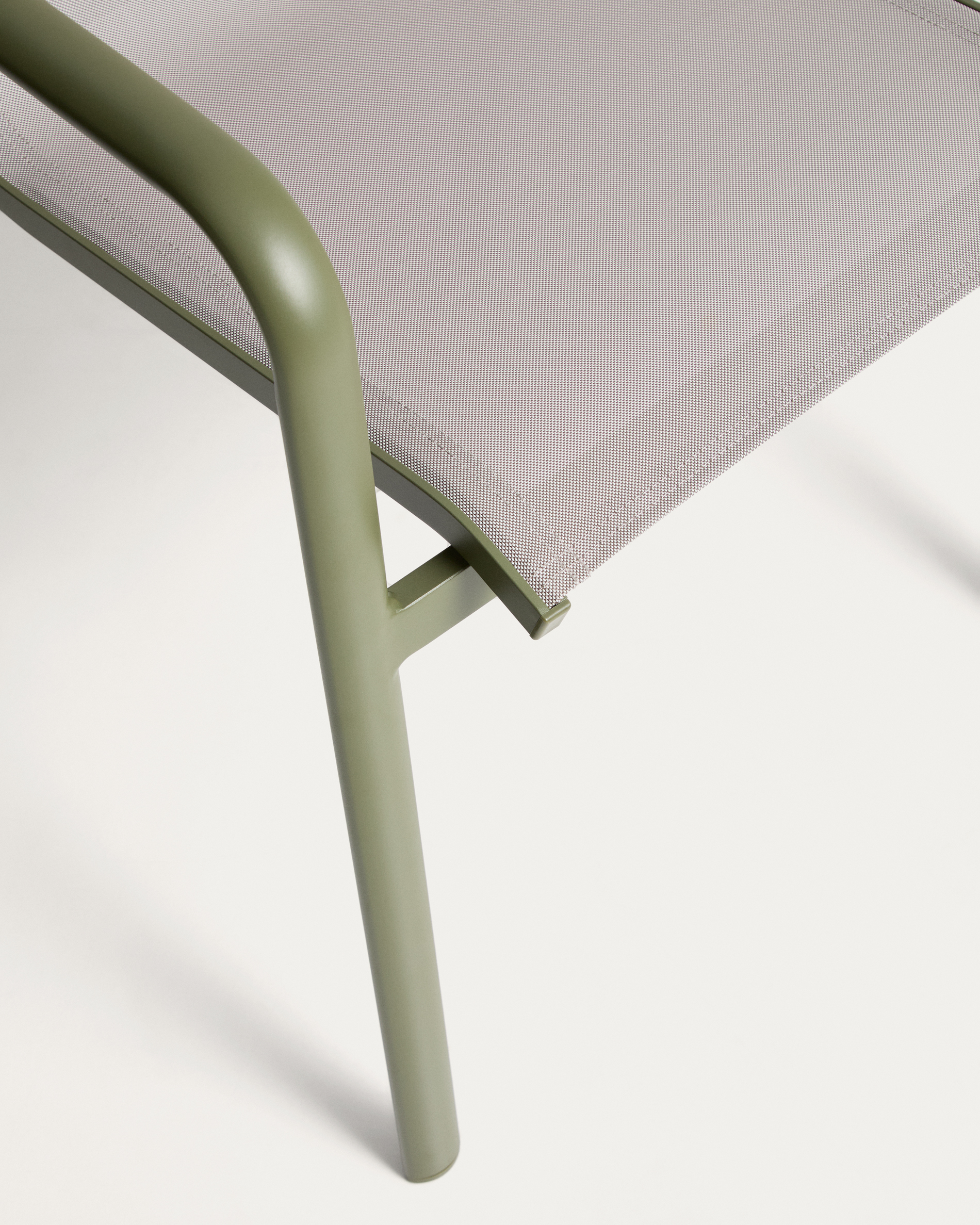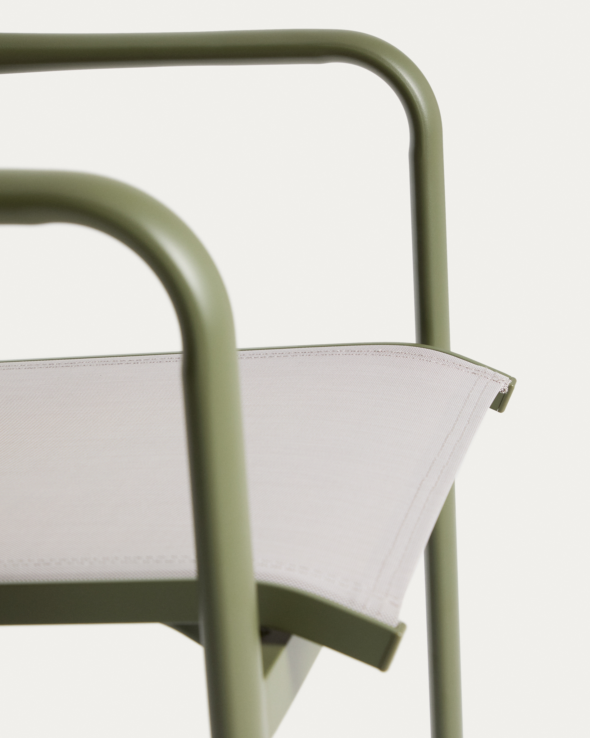 • Seat and backrest in texteline, a durable, breathable synthetic fabric suitable for continuous outdoor use.