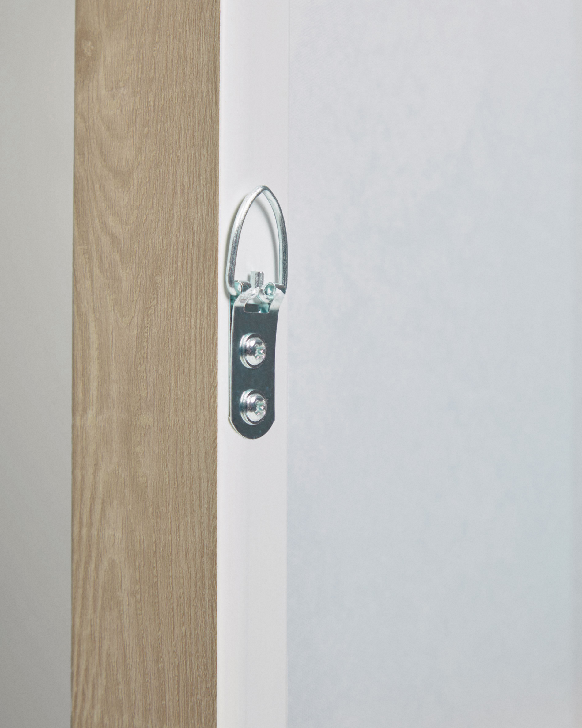 • This frame has hooks so you can hang it on screws, or the fitting appropriate for your wall.