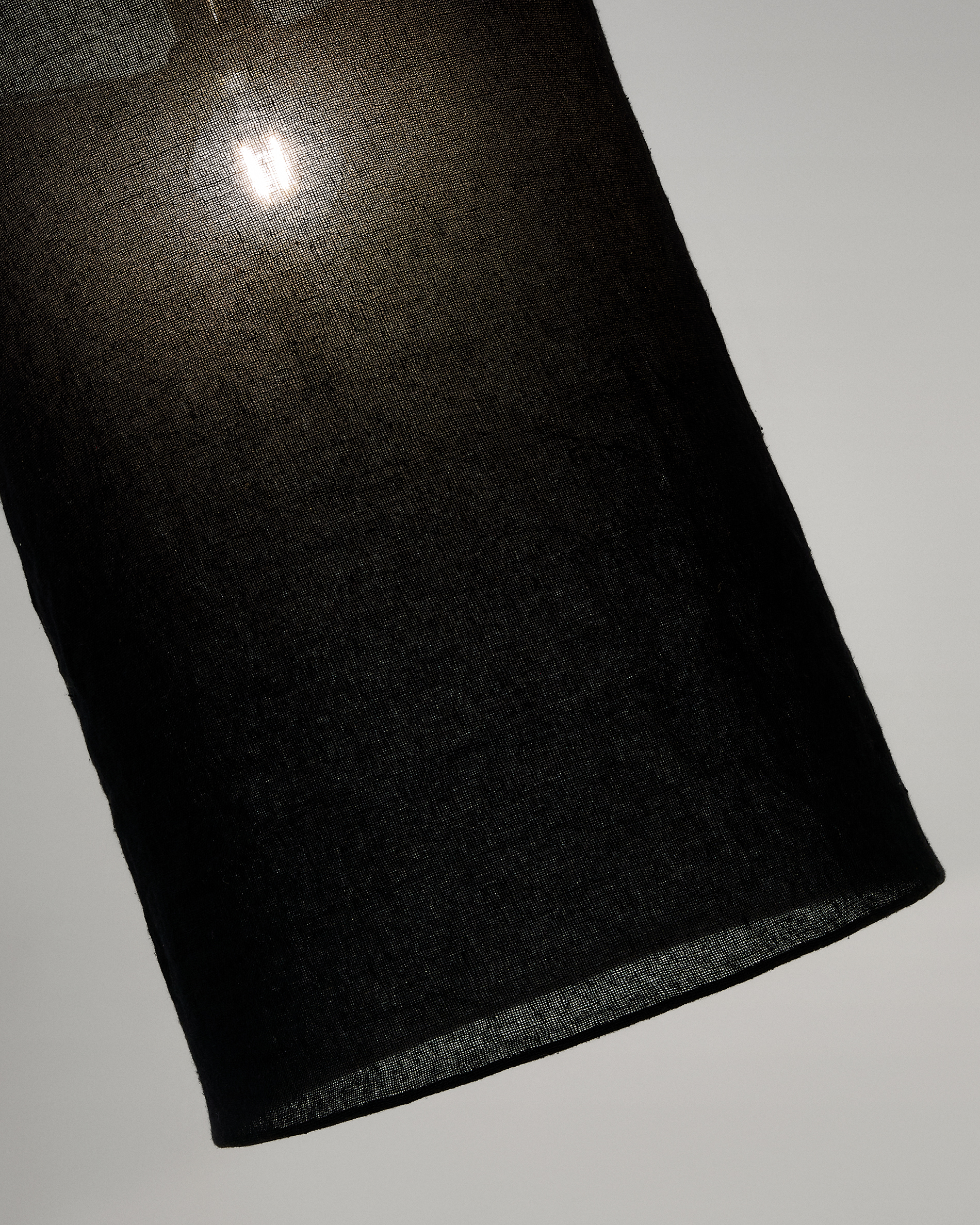• Ceiling lamp shade crafted from linen with a sleek black finish.
