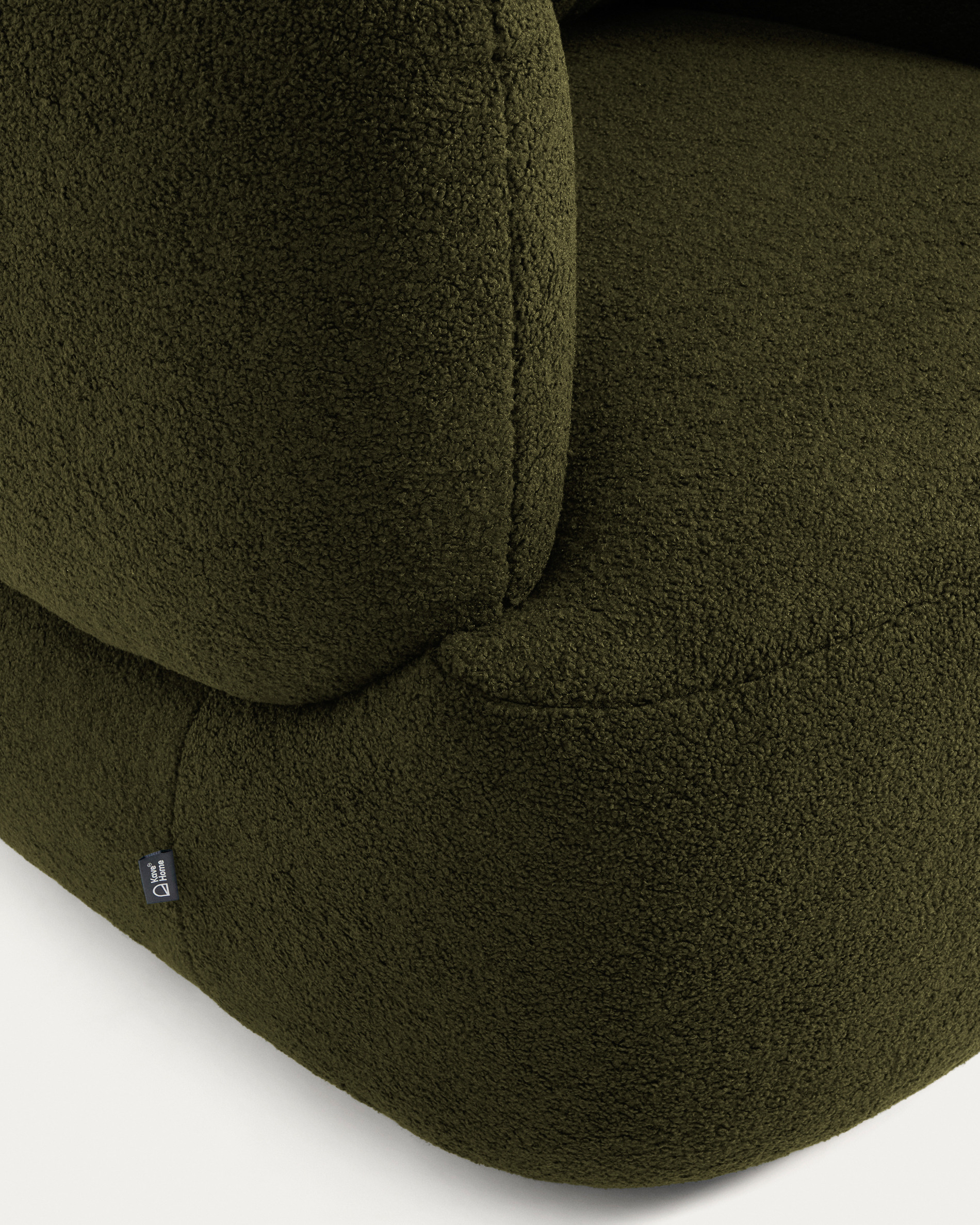 • 360º swivel armchair upholstered in warm and soft-touch 100% recycled polyester fabric with bouclé effect. One metre of upholstery contains at least 32 recycled 500 ml bottles.