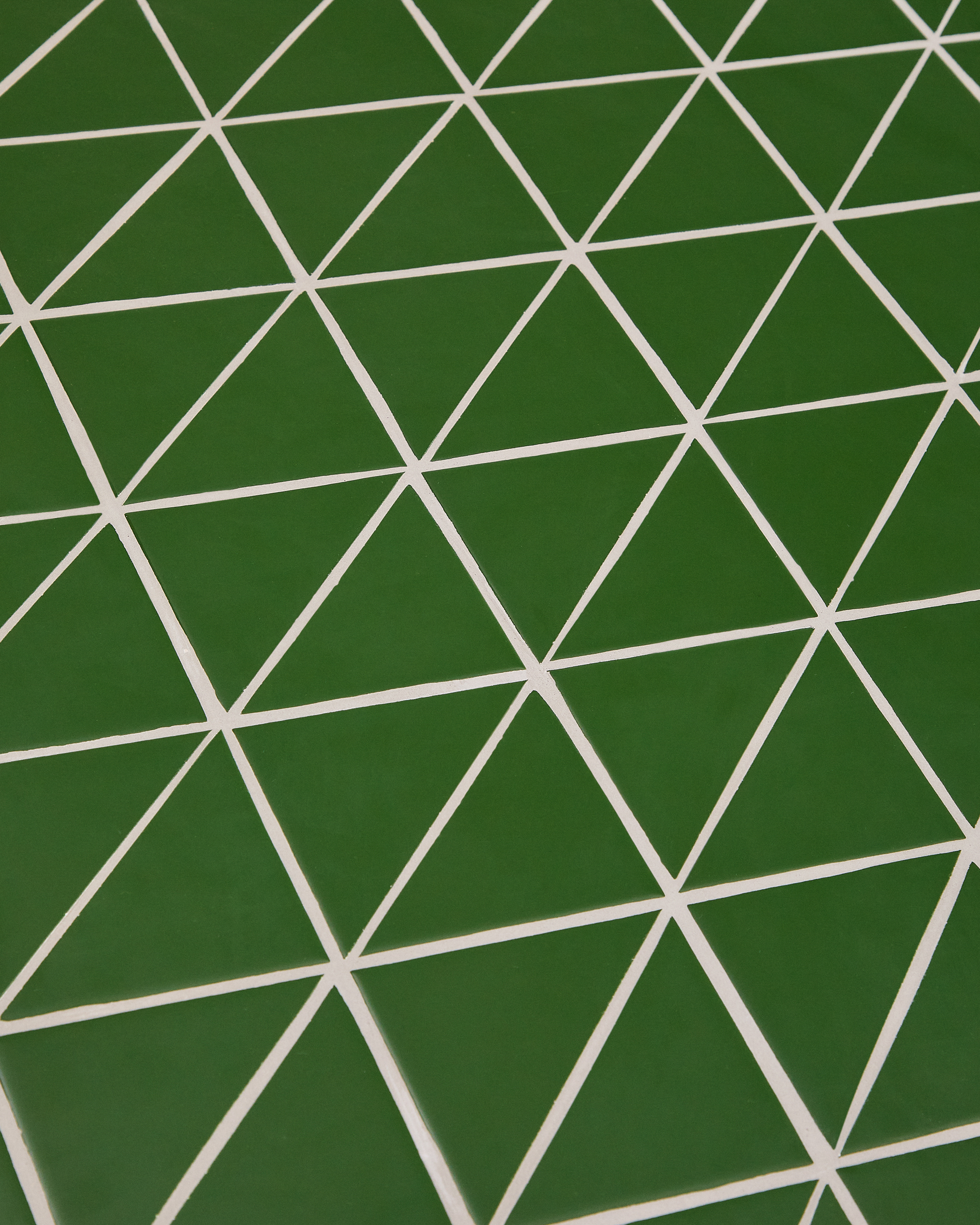 Maurina outdoor table in green galvanised steel with green tiles 182 x 91cm