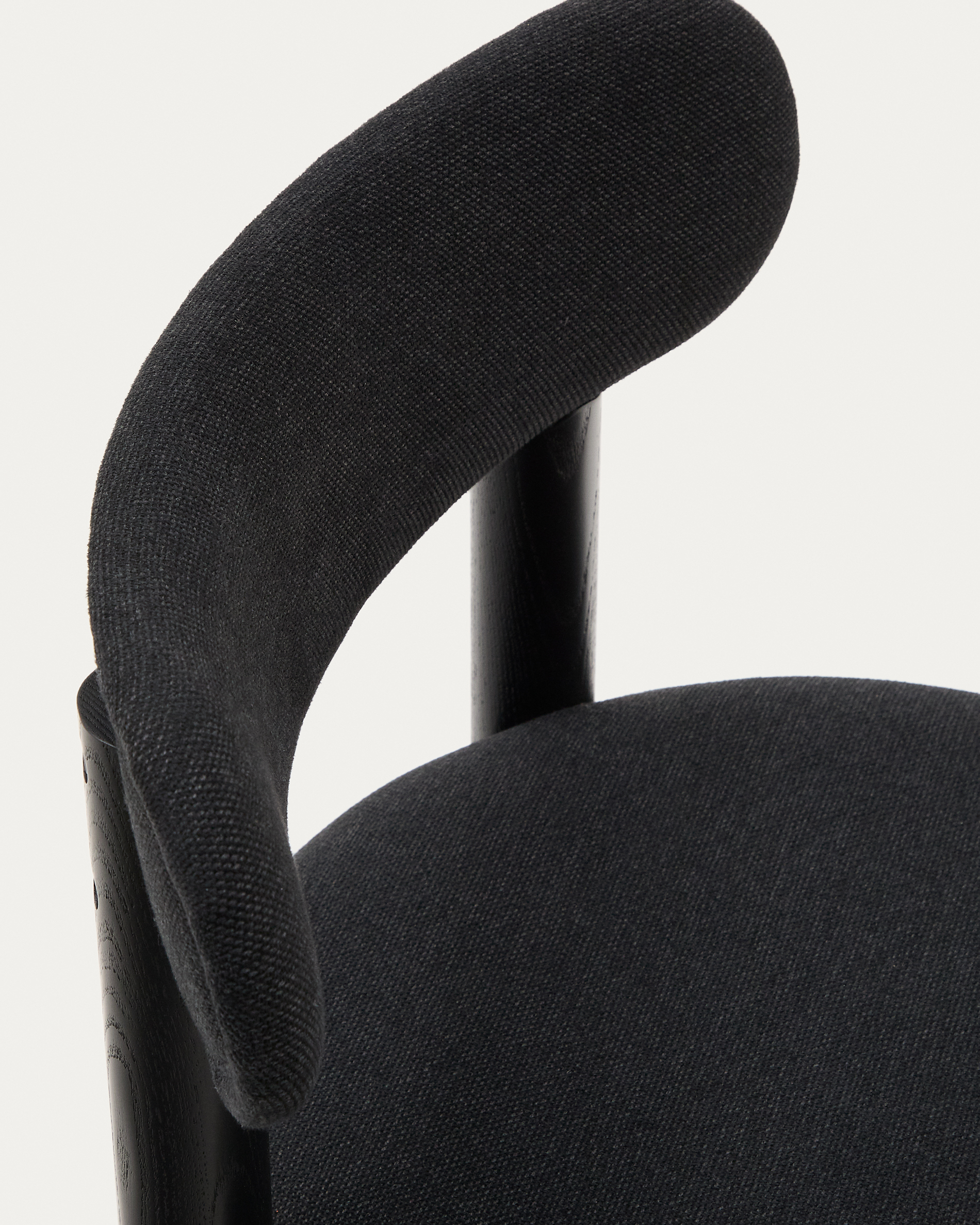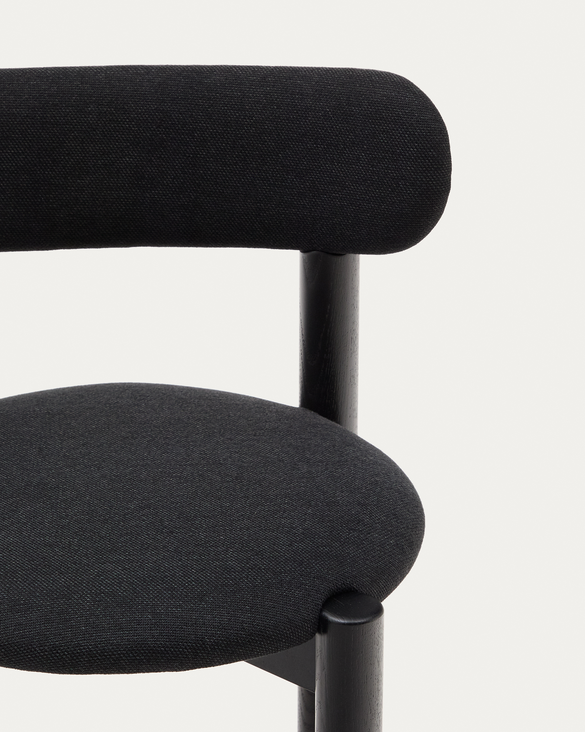 Nebai chair in black chenille with a solid oak wood structure and black finish FSC MIX Credit