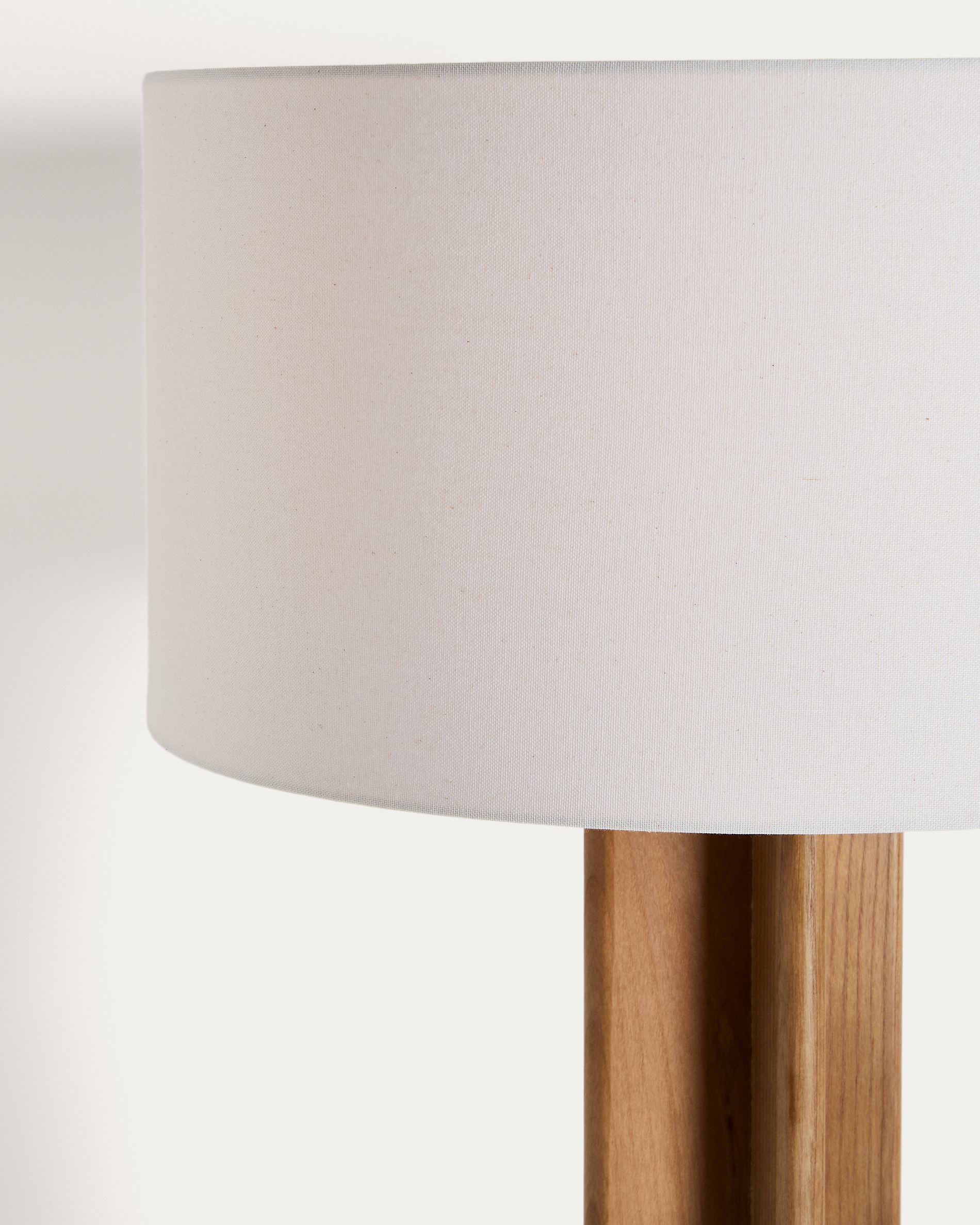 Niani floor lamp in rubber wood with clear finish and ivory-coloured cotton lamp shade