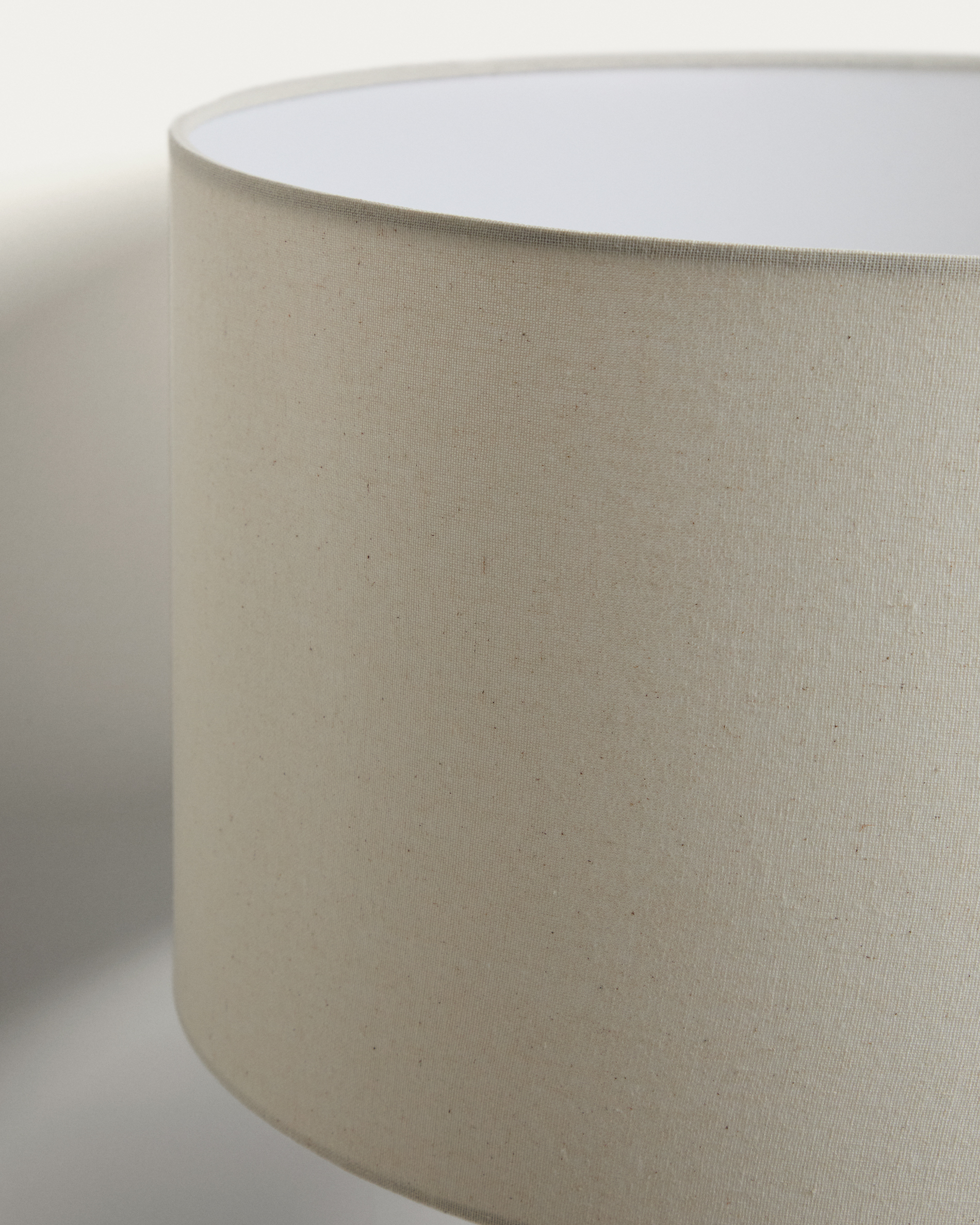Niani floor lamp in rubber wood with dark finish and ivory-coloured cotton lamp shade