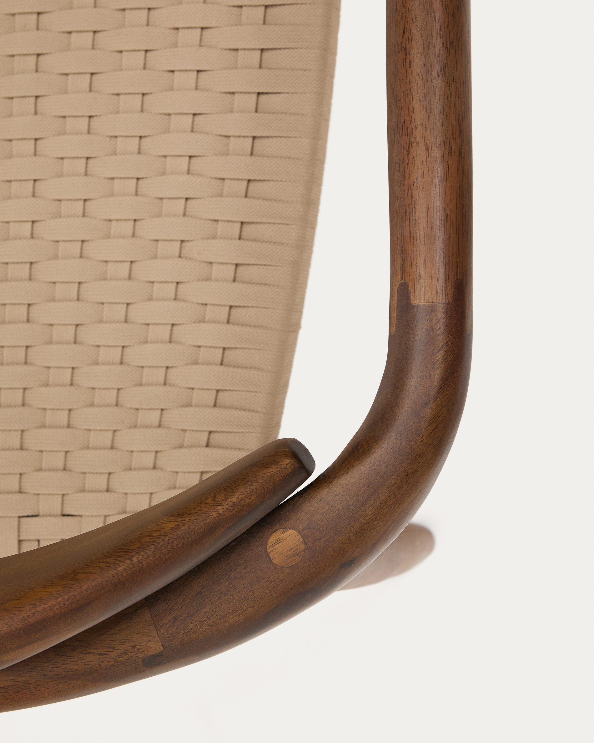 Nina stackable chair in solid acacia wood with walnut finish and beige rope seat FSC 100%