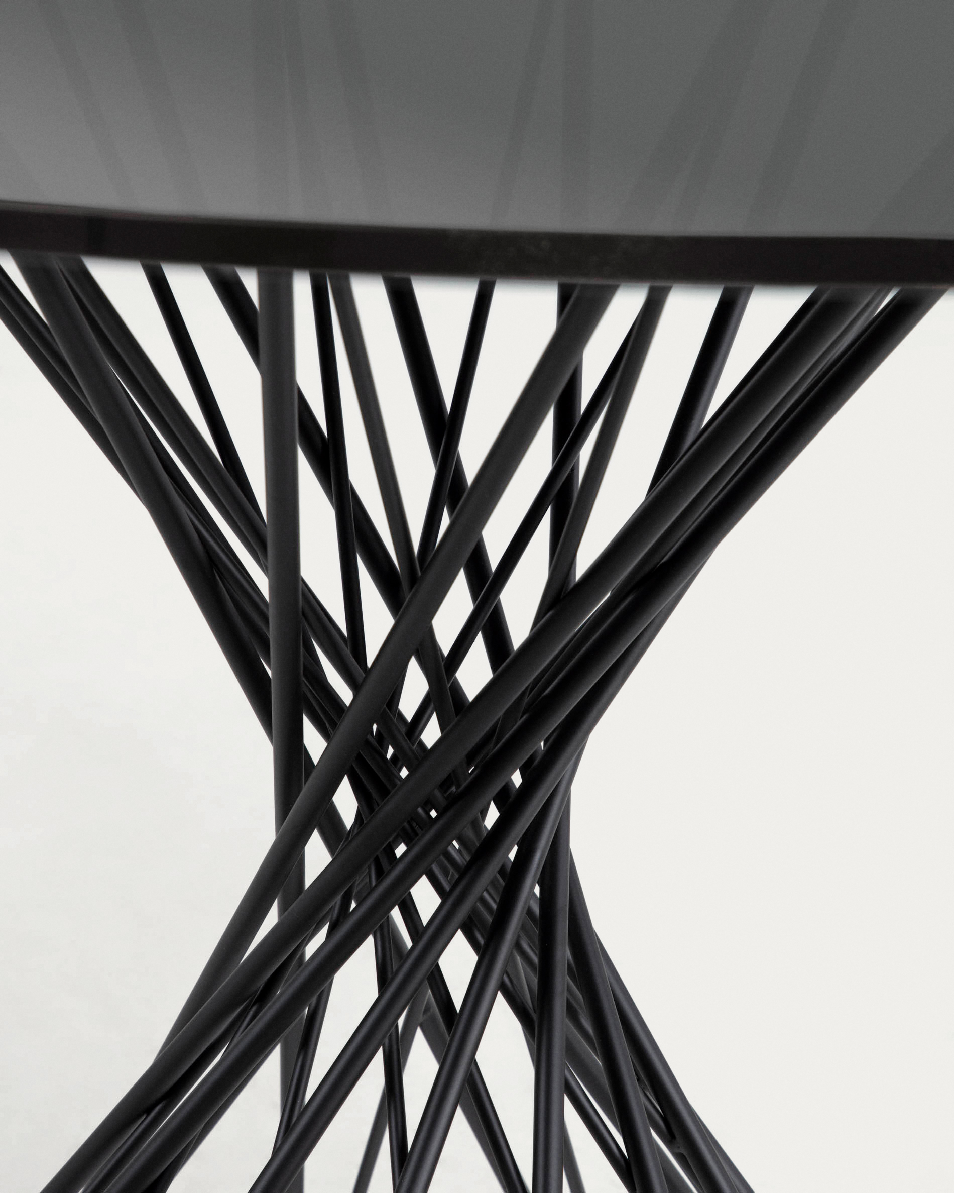 Niut round glass table with solid steel legs with black finish Ø 120 cm
