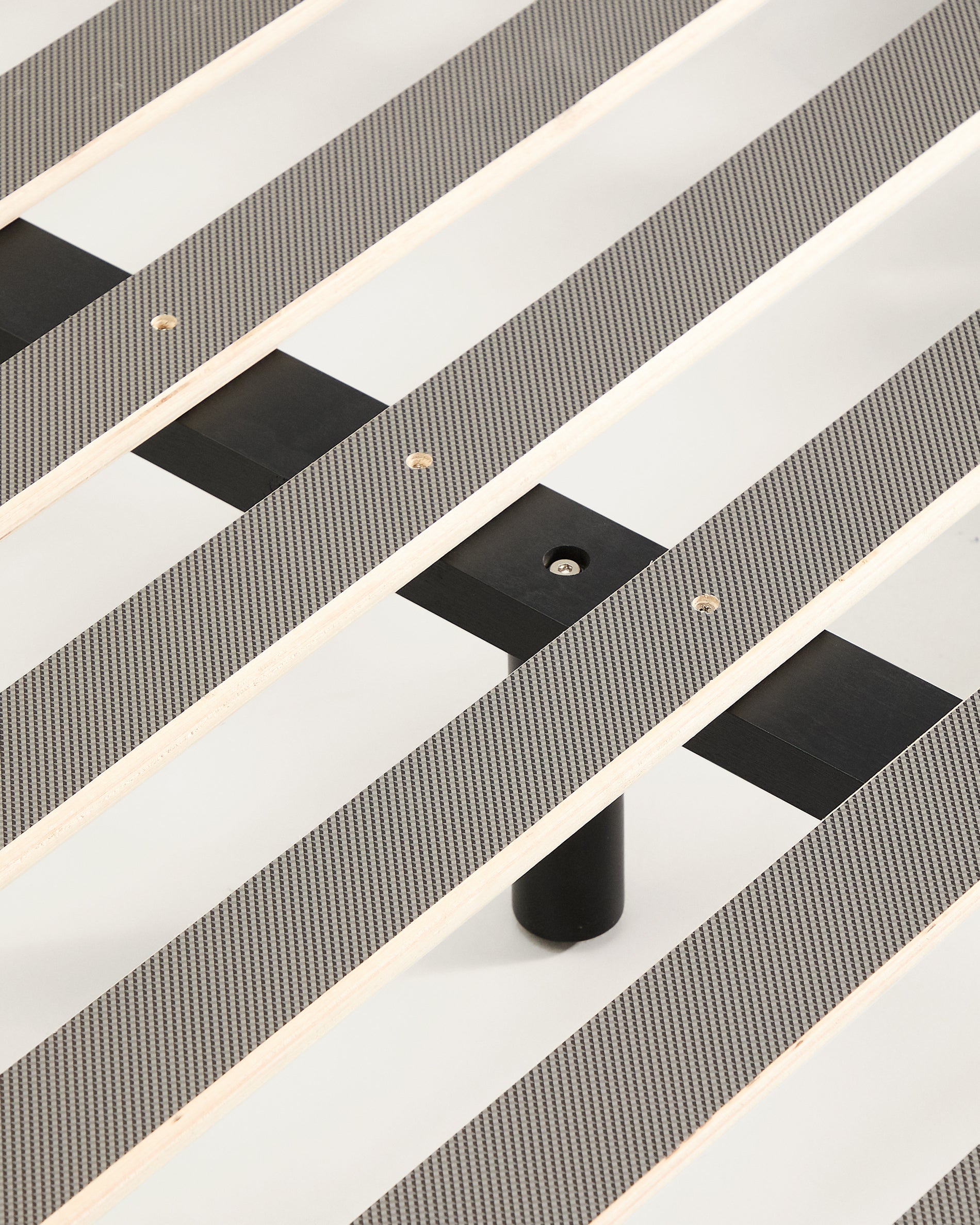 • 9 solid birch wood legs, with round cross-section and walnut veneer outer profile.