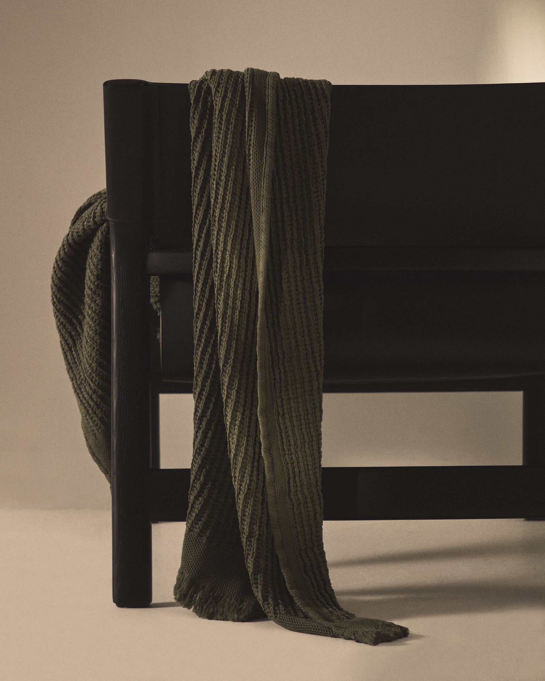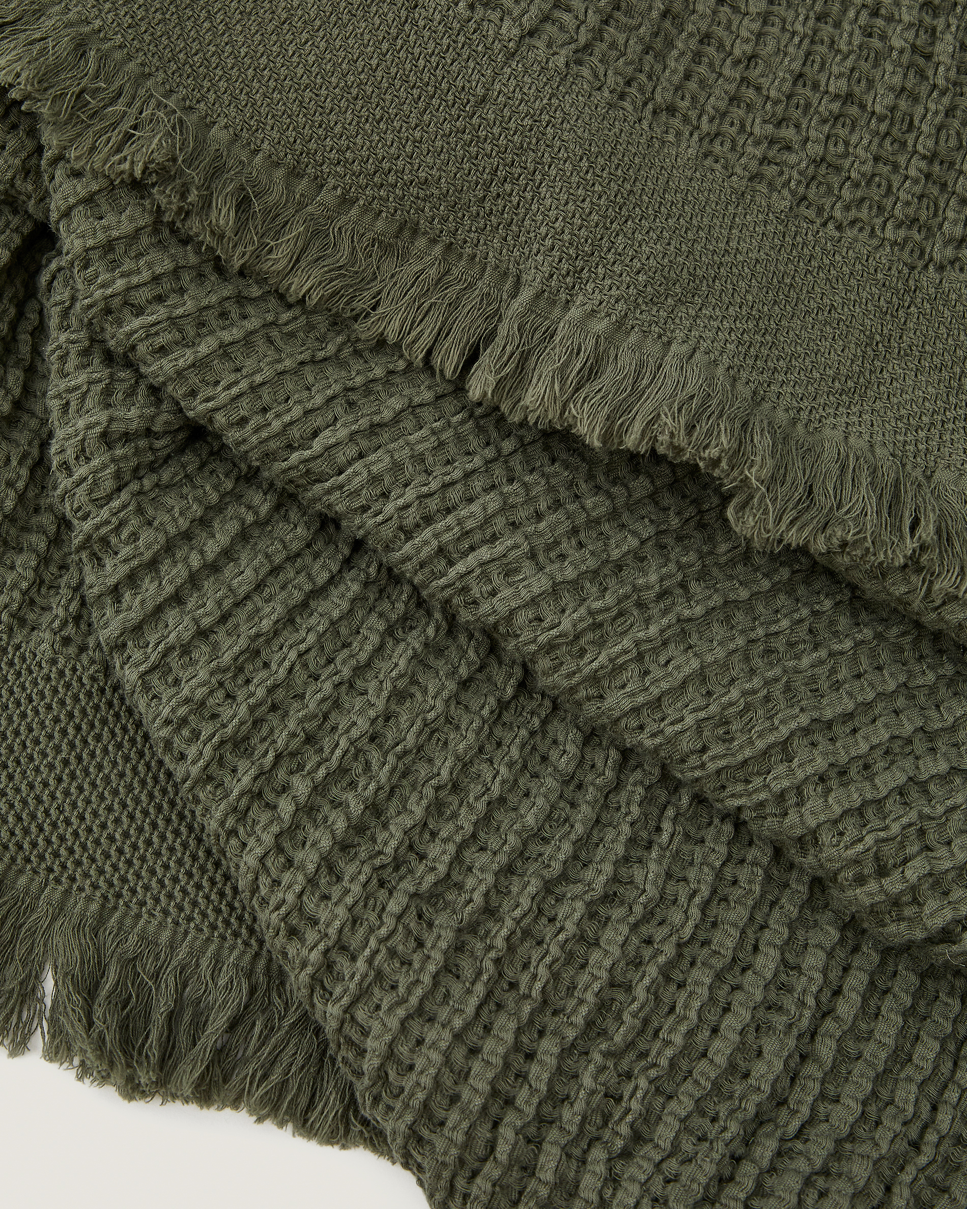 Nulina 100% cotton waffle blanket in green 130 x 170 cm