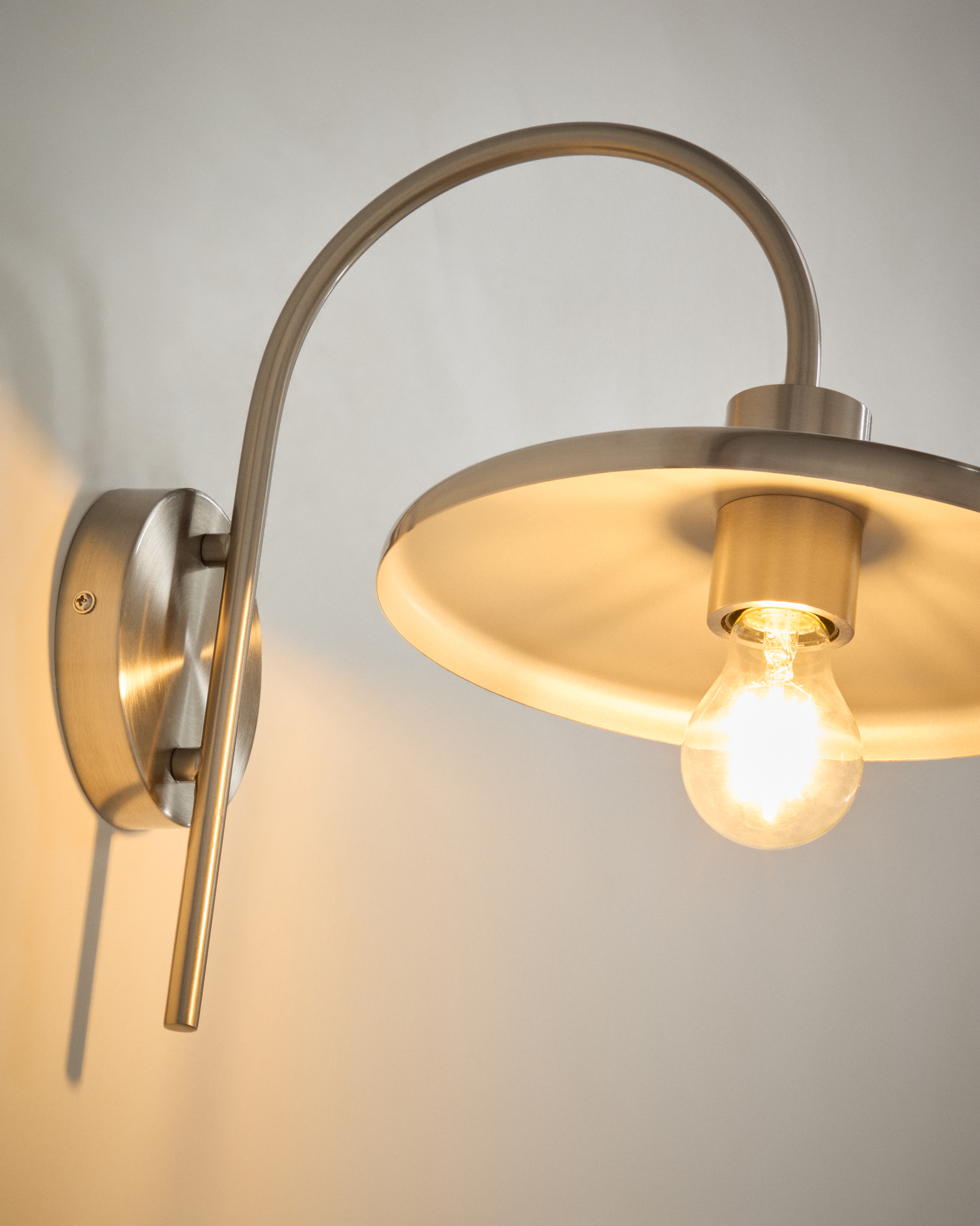 The Nuvira wall light stands out for its elegant and functional design, with a brushed steel structure that adds a contemporary and sophisticated air to any room. The anti-fingerprint finish keeps the surface spotless and makes it easy to clean, ideal for everyday use. The extra-soft black fabric cable adds a touch of distinction and quality, while blending in perfectly in all types of settings. Compatible with G9 bulb. Bulb not included.