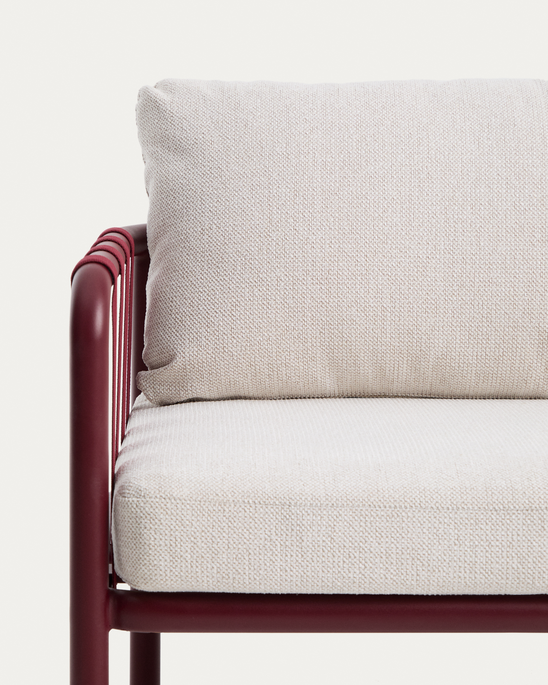 Omala set consisting of 2-seater sofa and 2 armchairs in burgundy rope cord and aluminium
