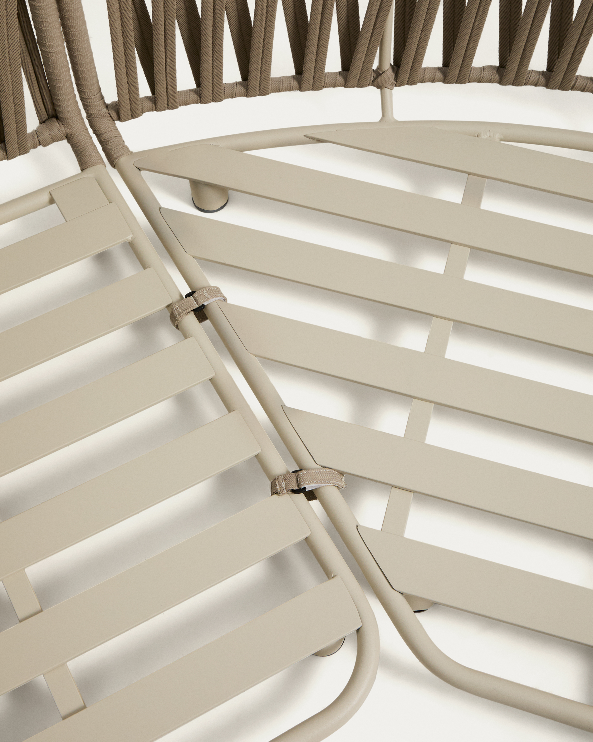 Osani 2-seater sofa and curved module in ecru aluminium and taupe rope cord 274cm